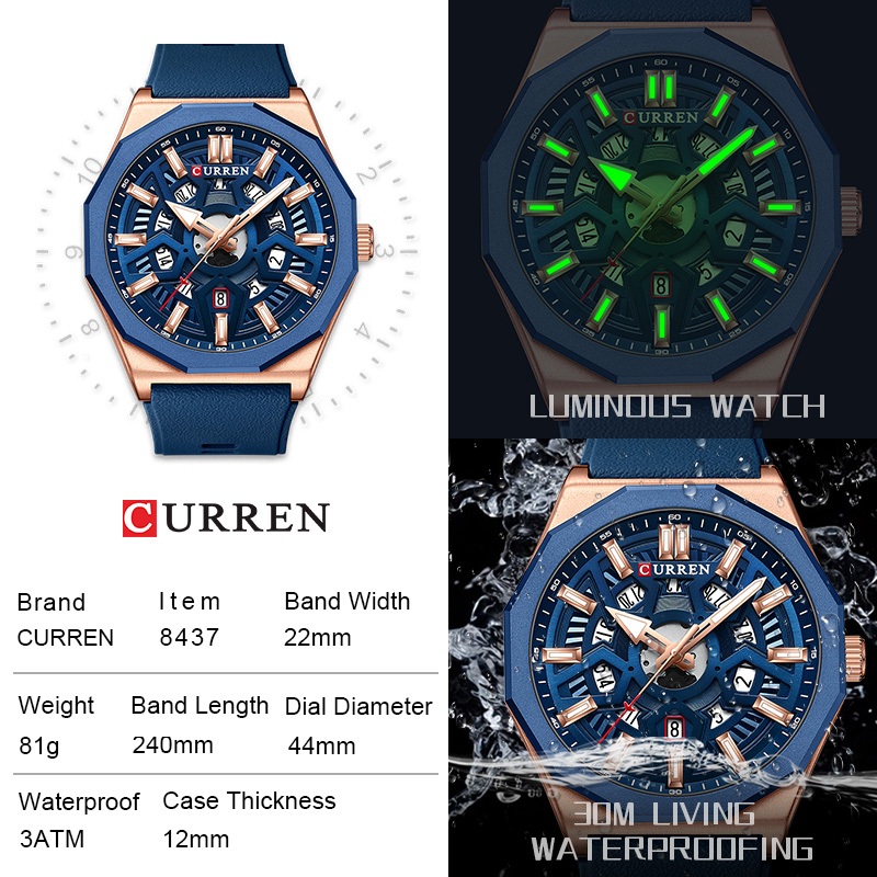 CURREN Relógio Masculino Marca Original Moda Retro Simples Ponteiro Luminoso Pulseira De Silicone Casual Esportes Quartzo À Prova Dwaterproof Água 8437 XQ