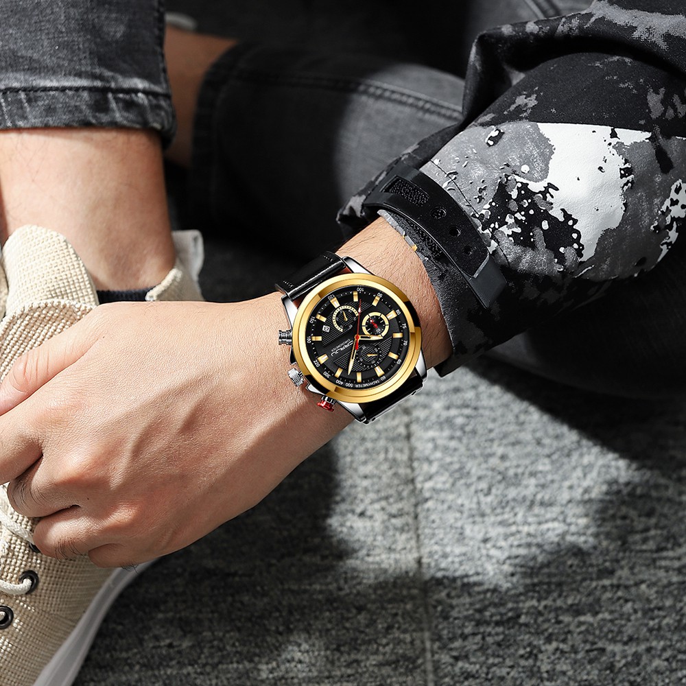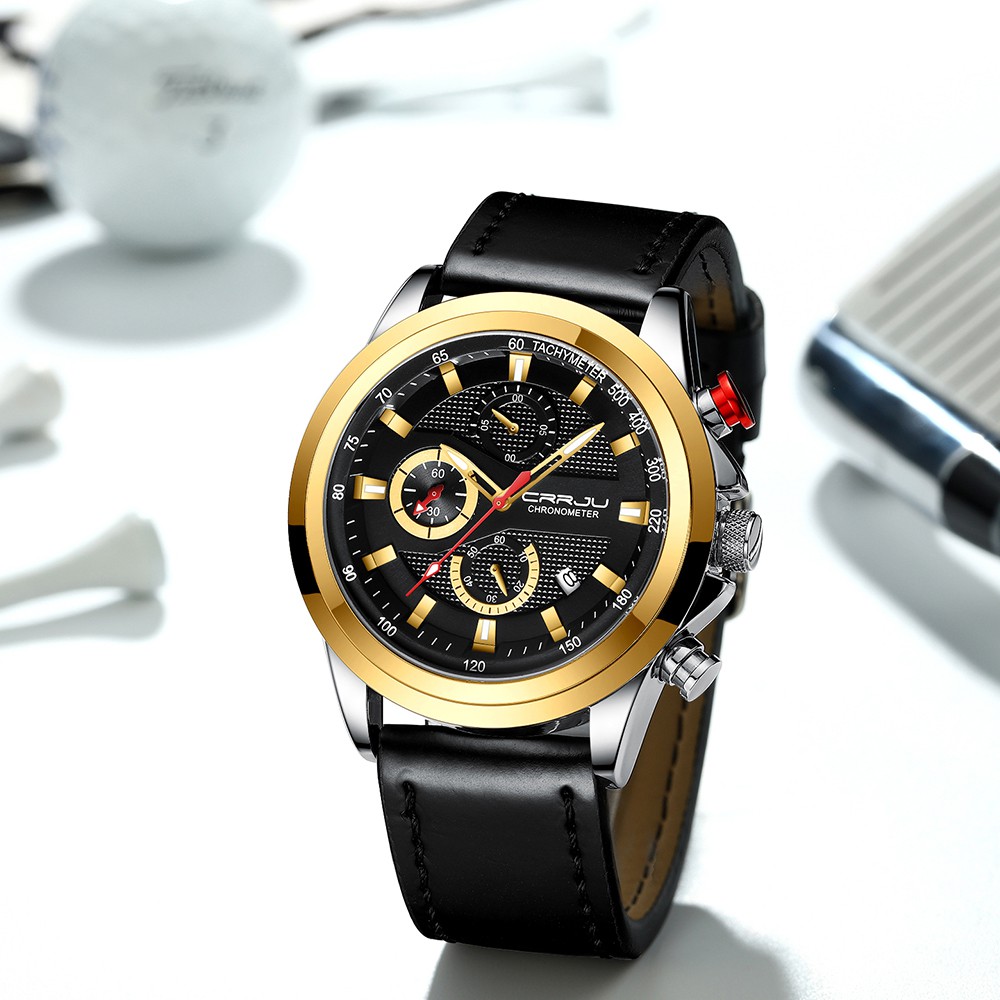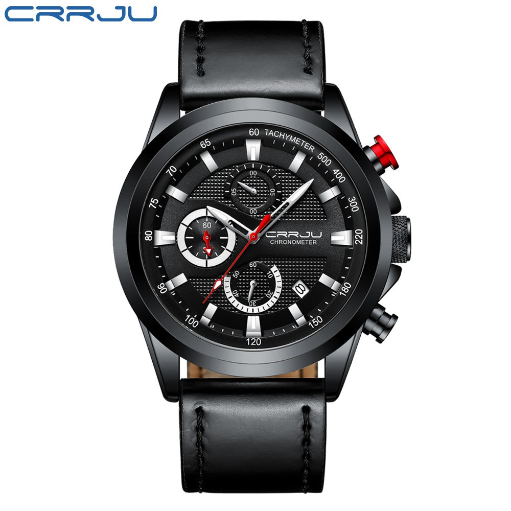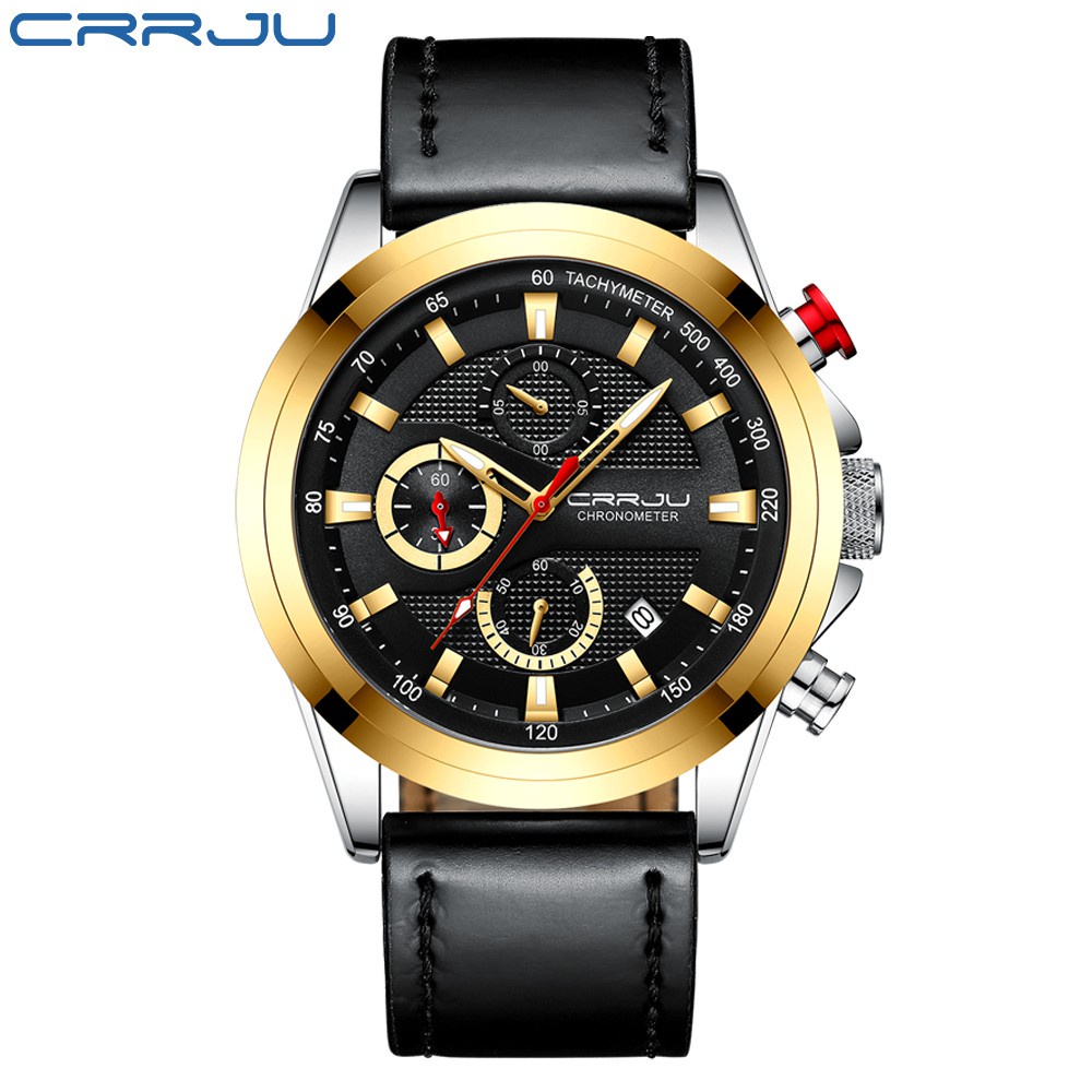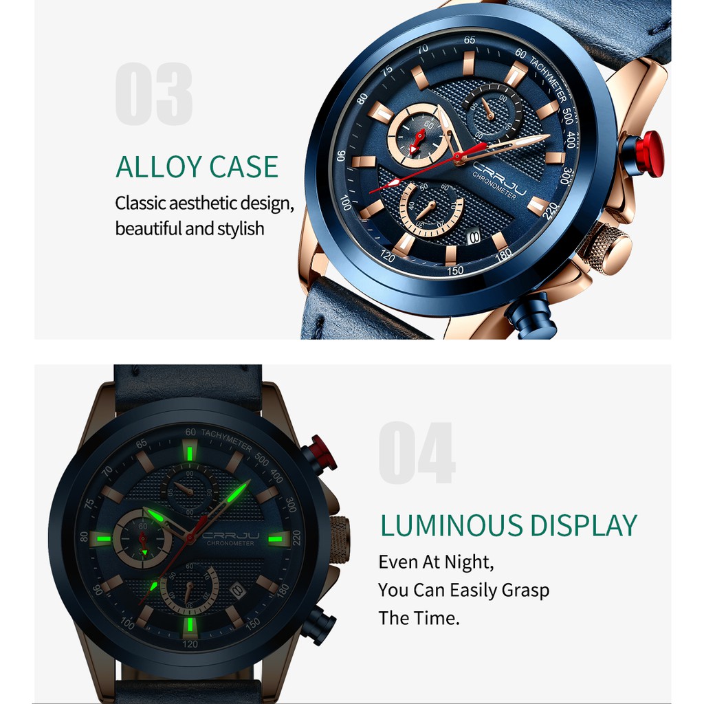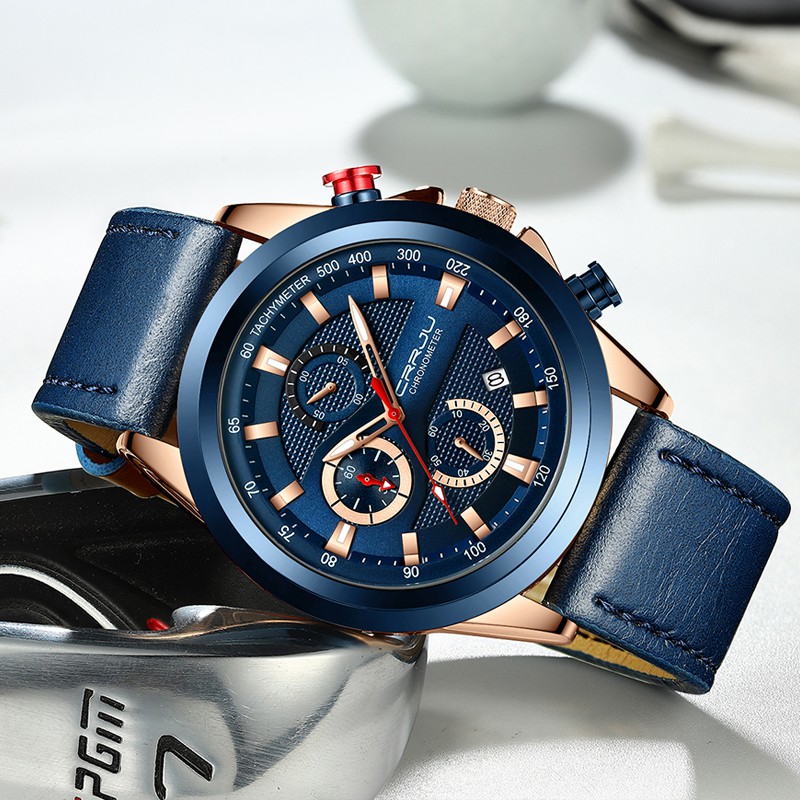 CRRJU Homens Couro Relógios Cronógrafo Calendário Azul Clássico Moda Casual Negócios Esportes Quartzo A Prova D'agua 2282 XL Sem Caixa