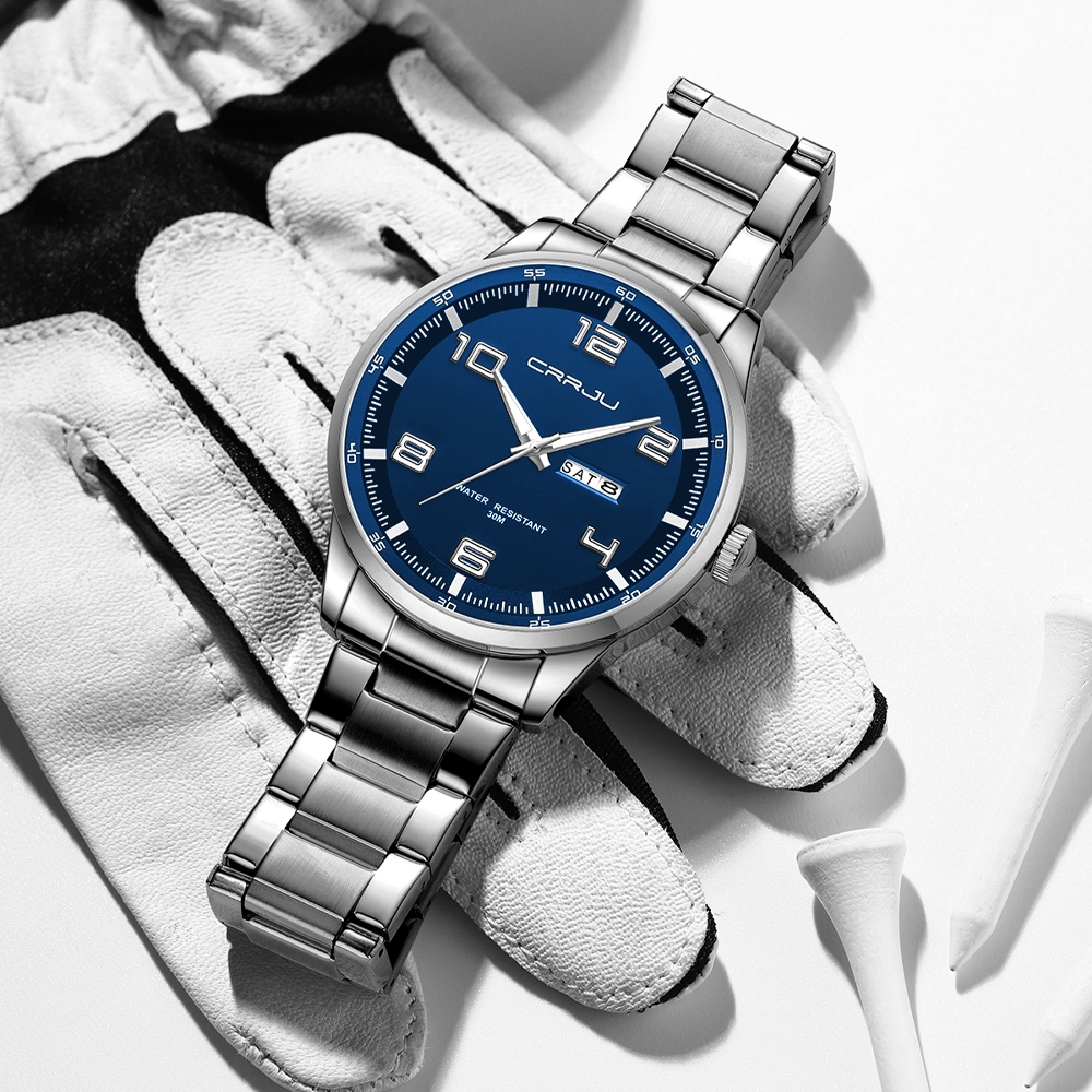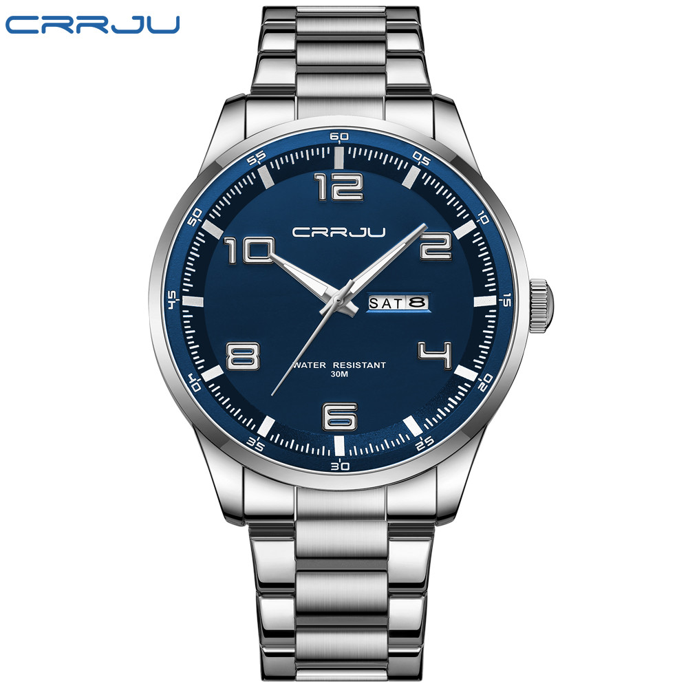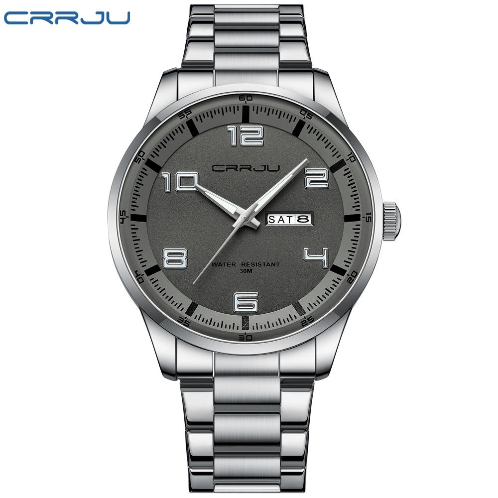 CRRJU Relógio Masculino Marca Original Moda Simples Luminoso Analógico Pulseira De Aço Inoxidável Casual Negócios Esport