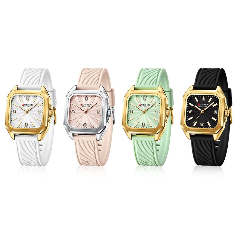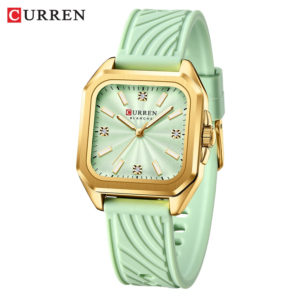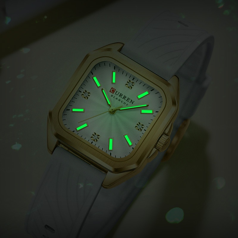 Relógio Feminino Autêntico CURREN Nova Pulseira Quadrada De Silicone Com Mãos Luminosas Design Exclusivo Estilo Versátil