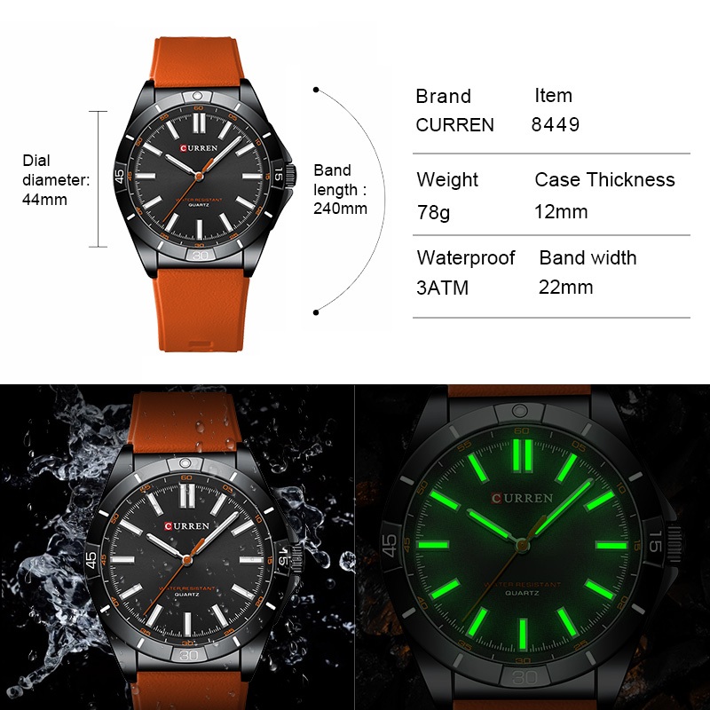 CURREN Relógio Masculino Marca Original Moda Simples Ponteiro Luminoso Pulseira De Silicone Casual Esportes Quartzo Anal