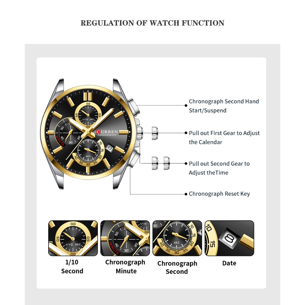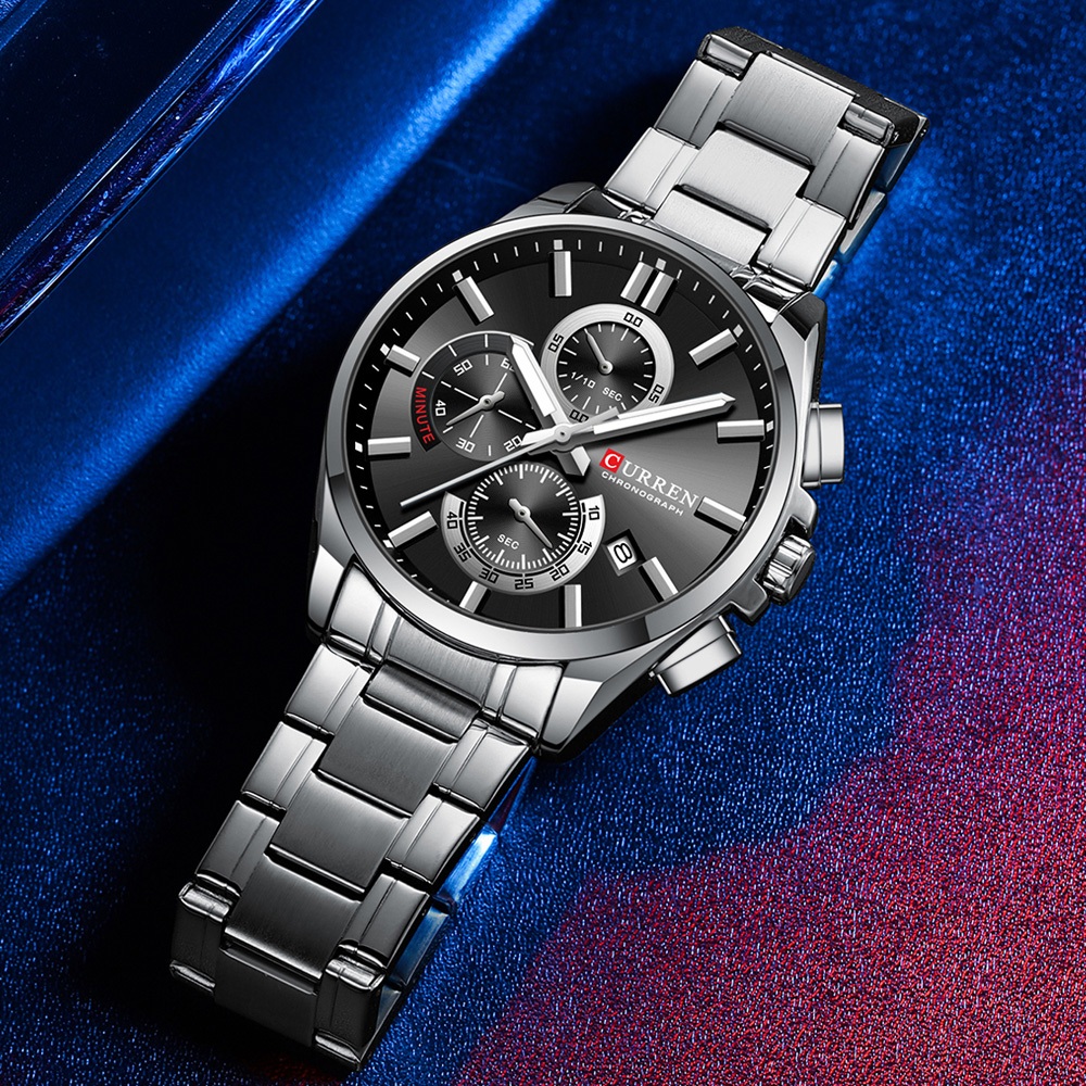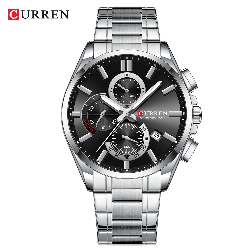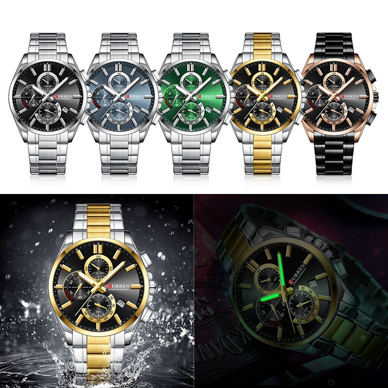 Novo Relógio Masculino CURRE Marca Original Cronógrafo Ponteiro Luminoso Dial Pulseira De Aço Inoxidável Moda Negócios C