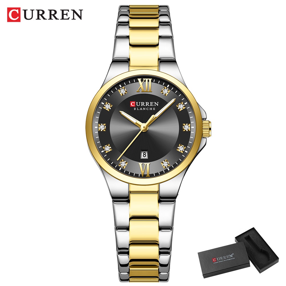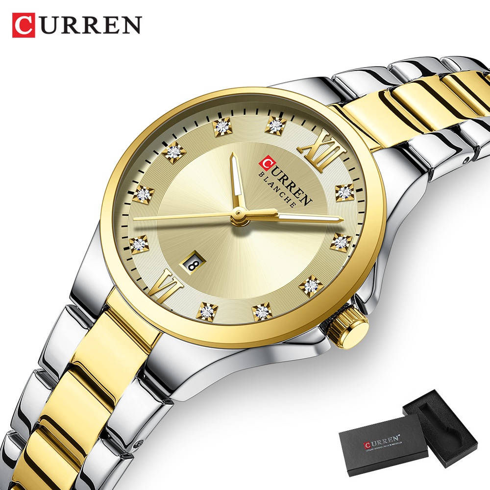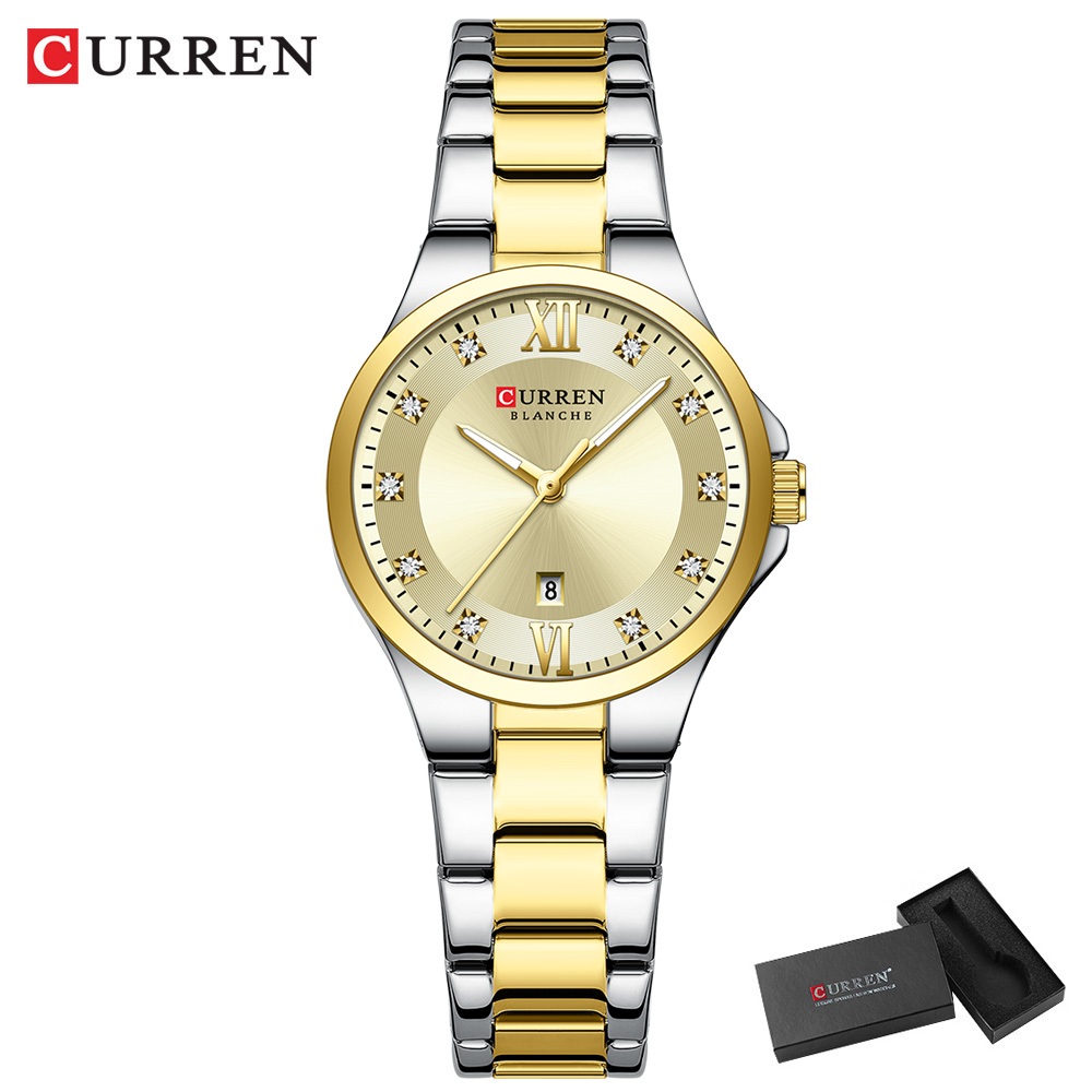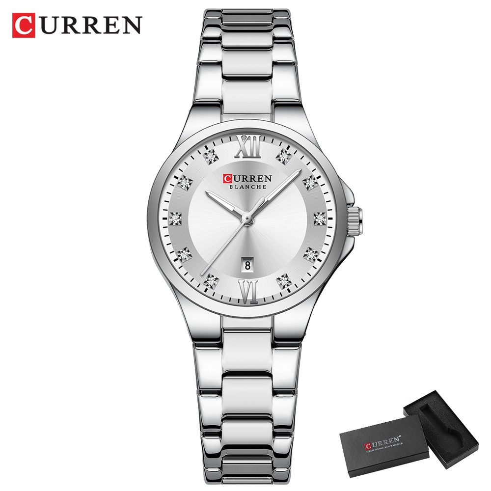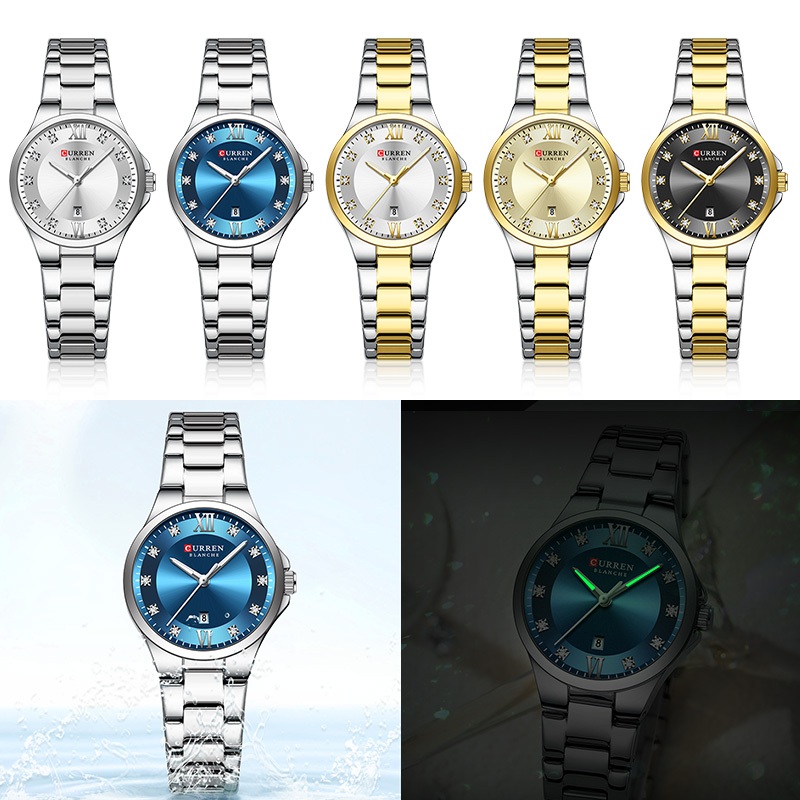 Novo CURREN Relógio Feminino Luxo Aço Inoxidável Ponteiros Luminosos Moda Negócios Quartzo À Prova D'água 9107