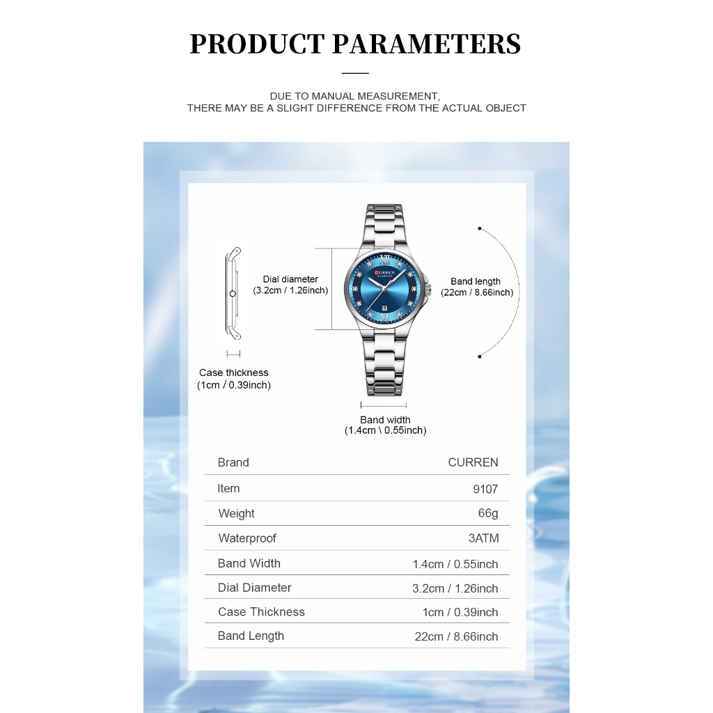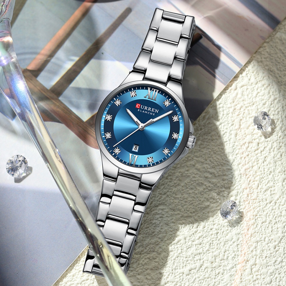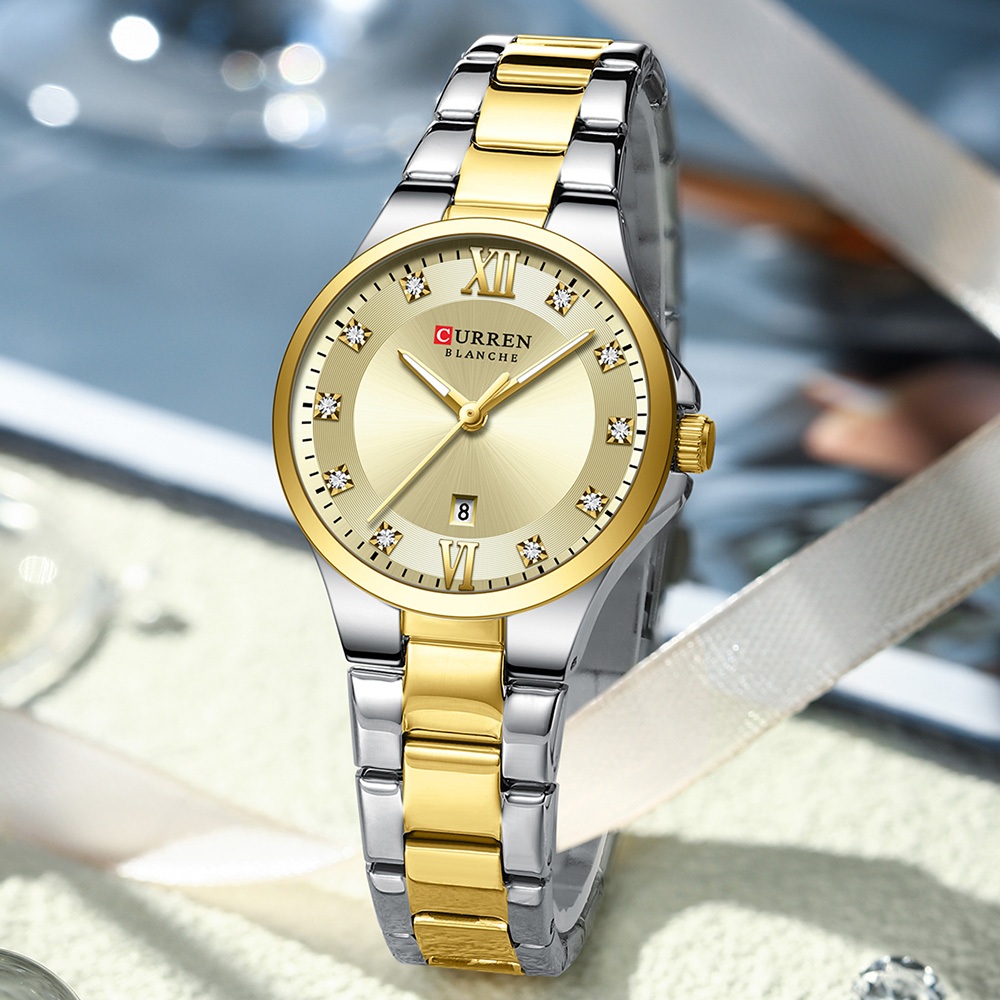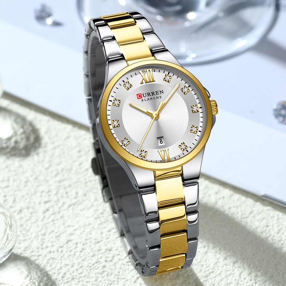 Novo CURREN Relógio Feminino Luxo Aço Inoxidável Ponteiros Luminosos Moda Negócios Quartzo À Prova D'água 9107