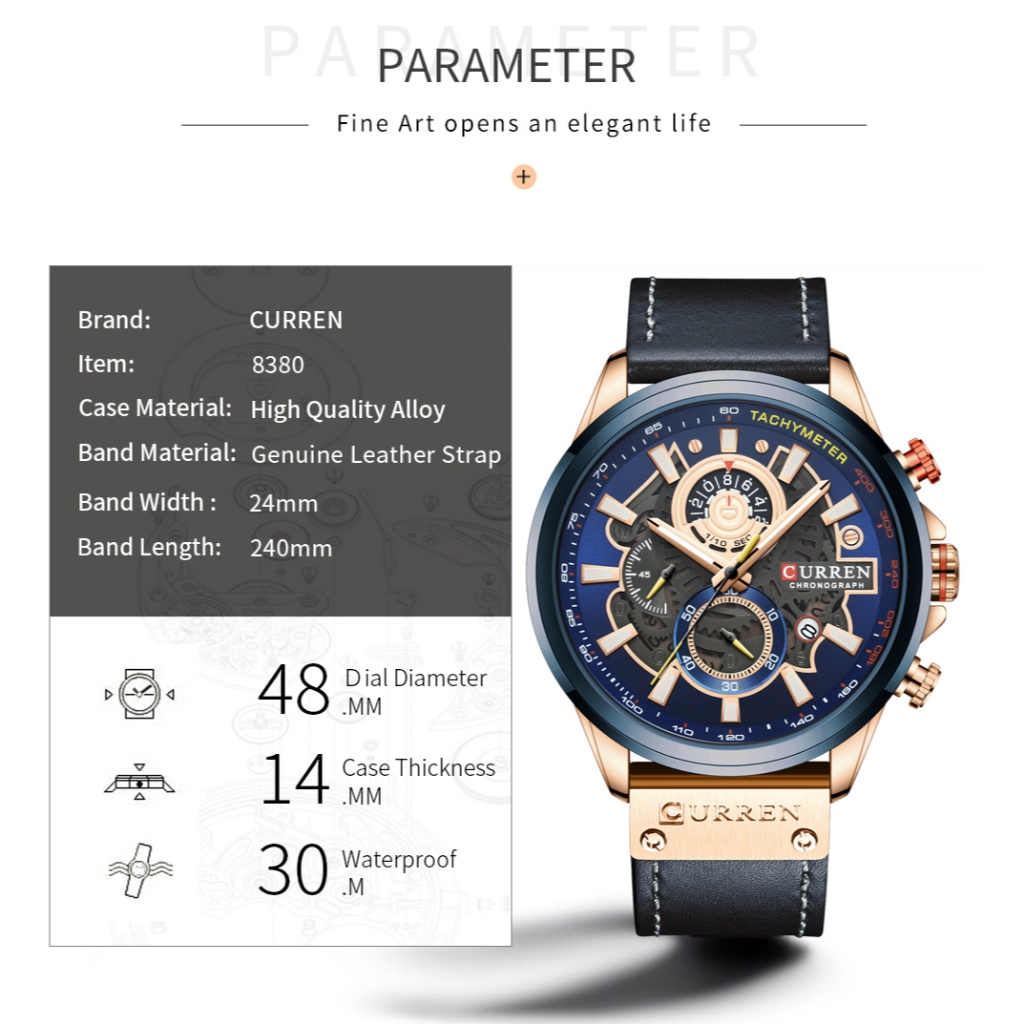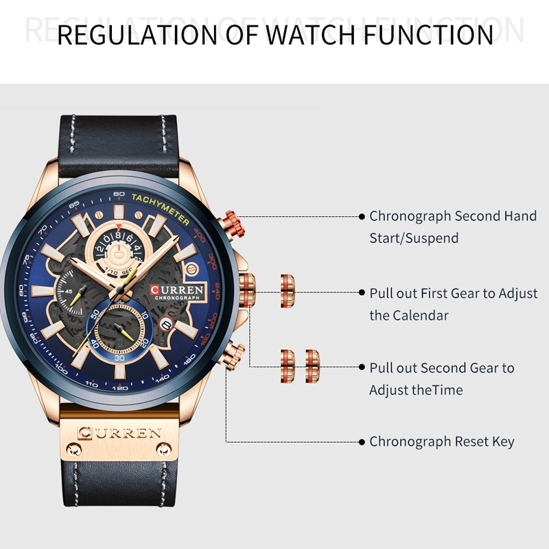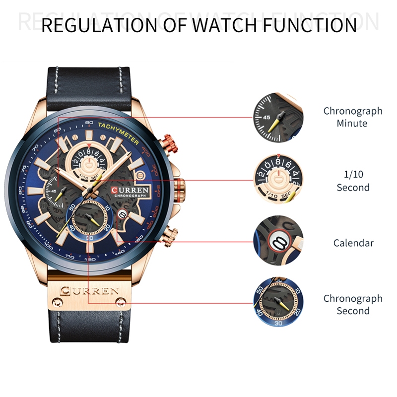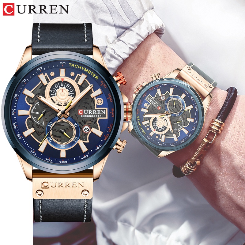 Curren Relógios Masculinos Moda Couro Original Multifuncional Quartzo À Prova D'água 8380 X