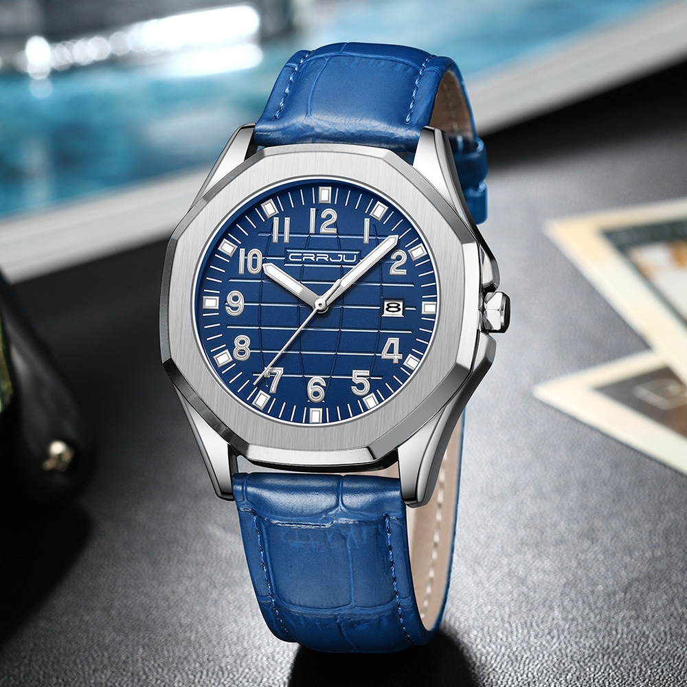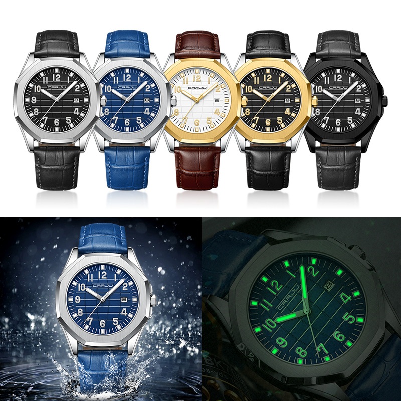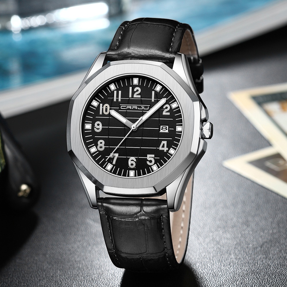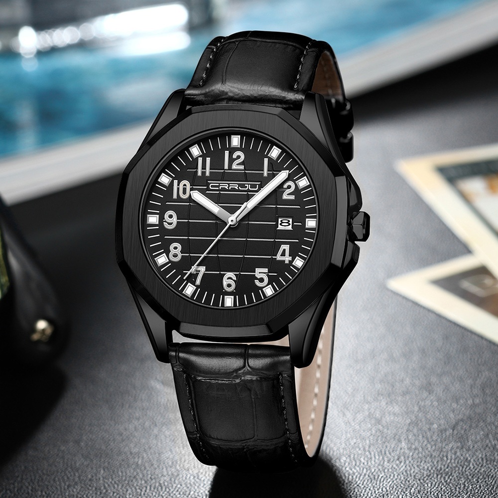 CRRJU Relógios Masculinos Originais Genuínos Marca Superior Quartzo Analógico Luminoso Ppointer Pulseira De Couro Moda L