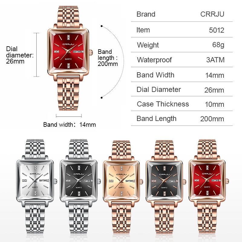 CRRJU Relógios Femininos Originais Novo Top De Luxo De Alta Qualidade Em Aço Inoxidável Quadrado Design Exclusivo Mostra