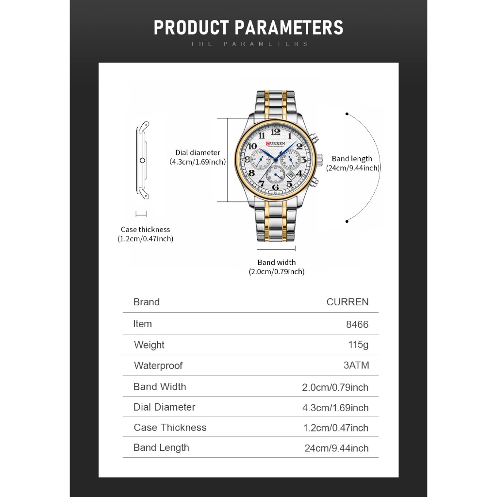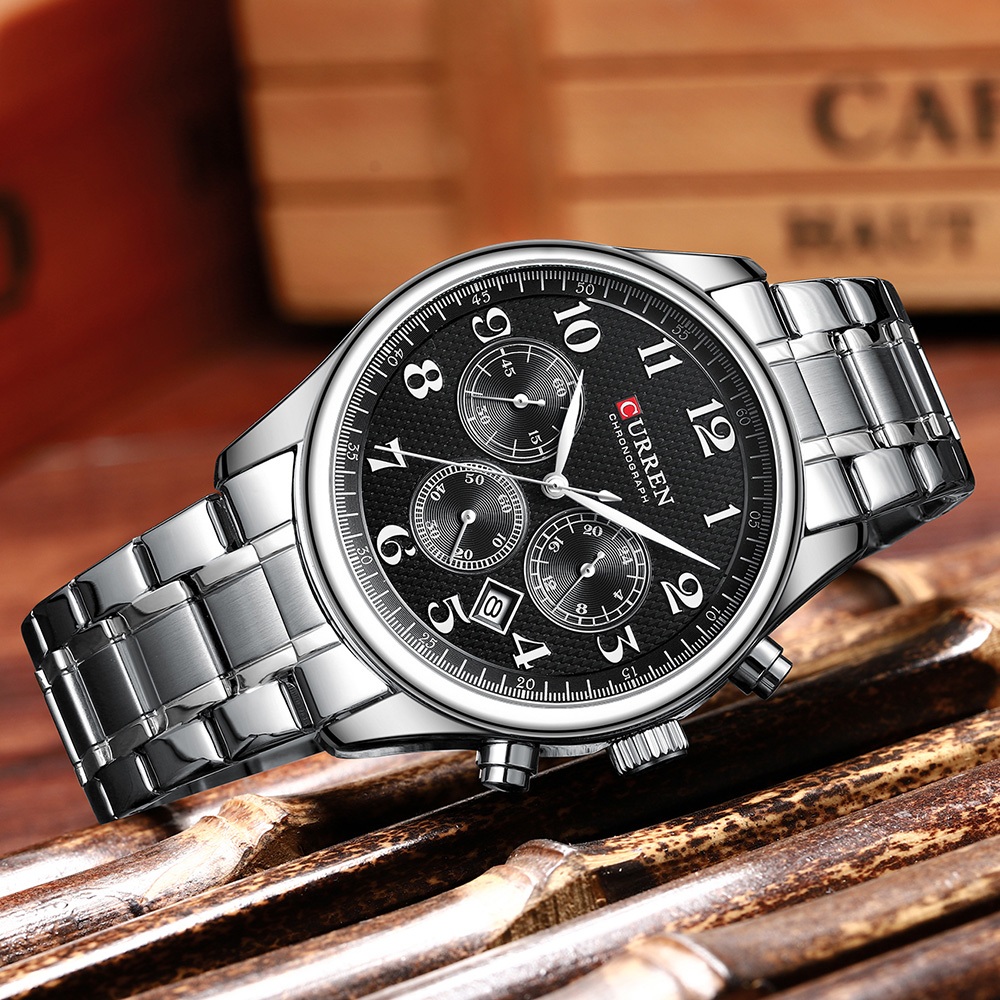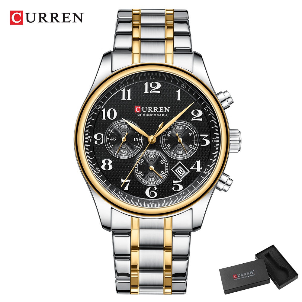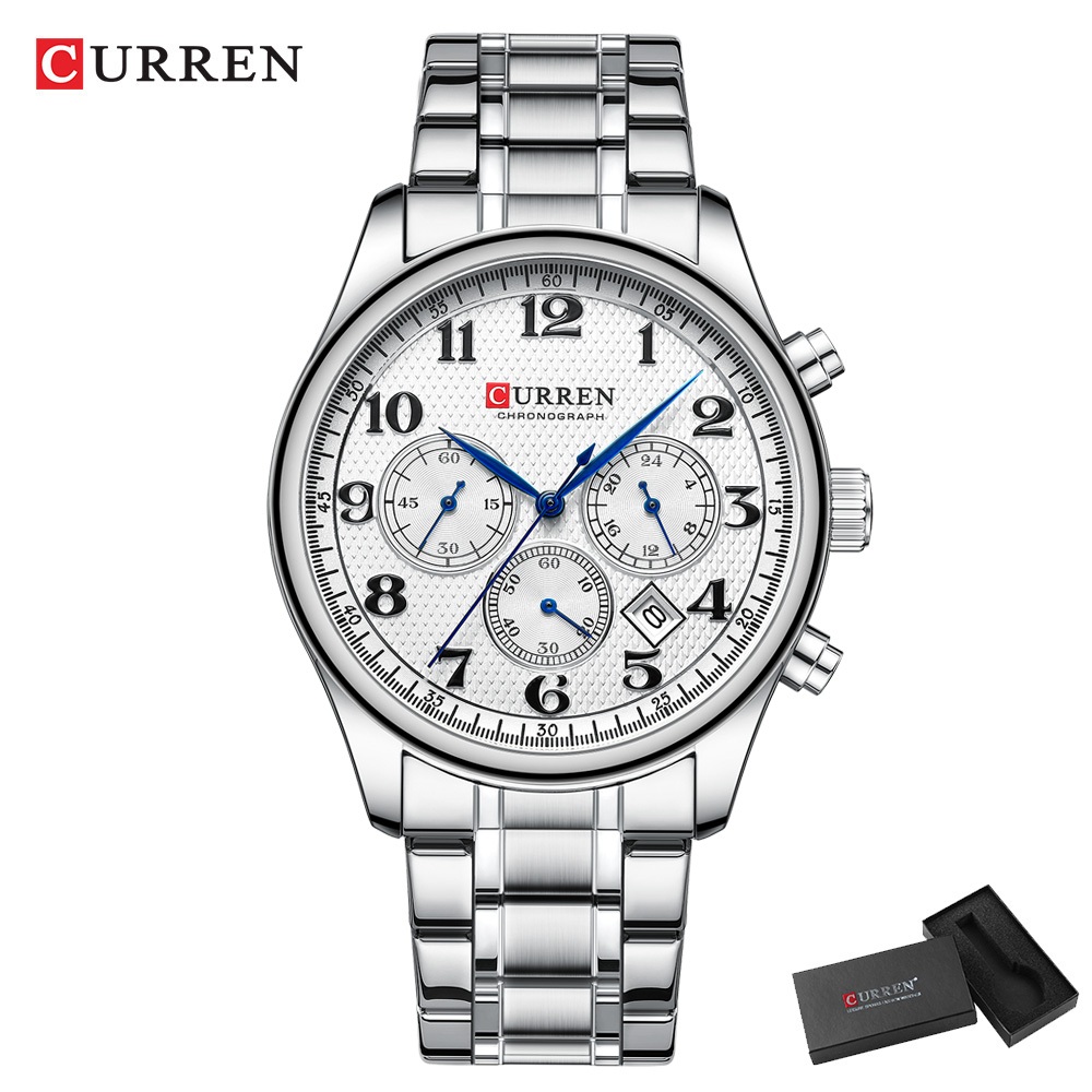 Original CURREN Relógio Masculino Pulseira De Aço Inoxidável Multifuncional Cronógrafo Dial À Prova Dwaterproof Água Mod