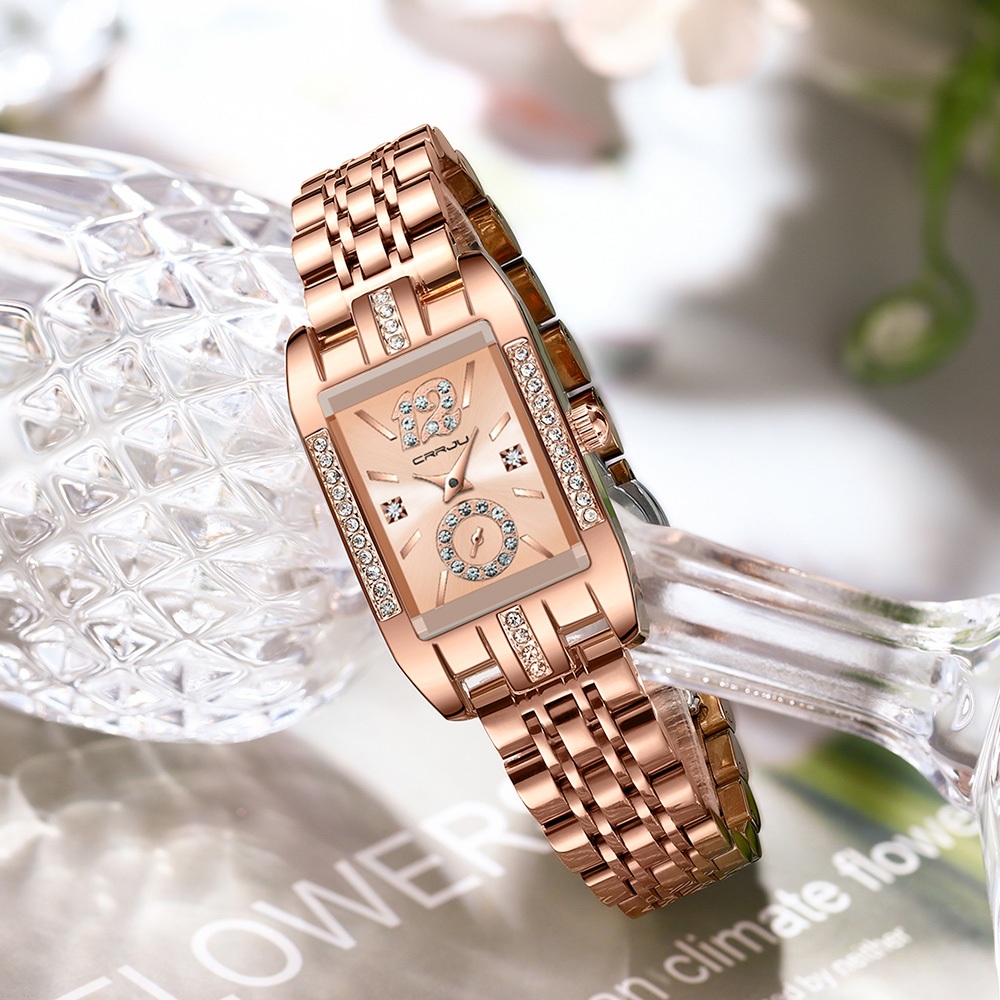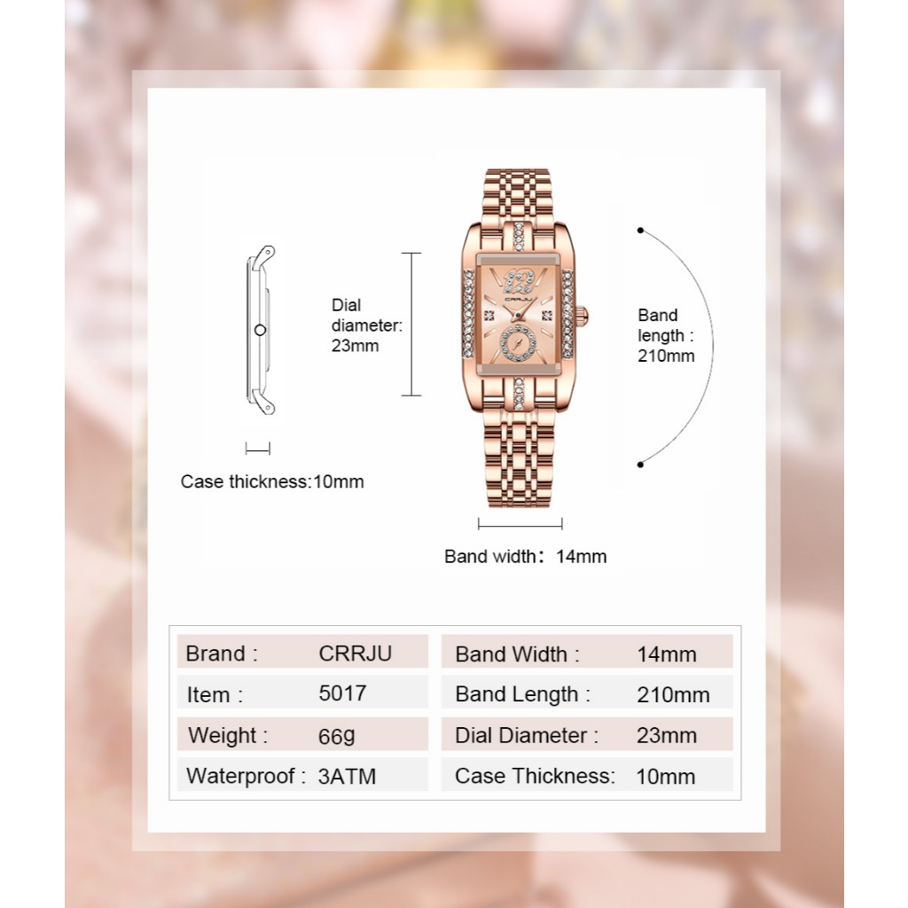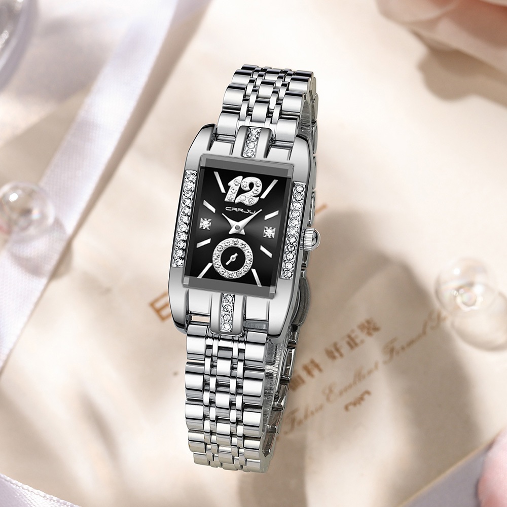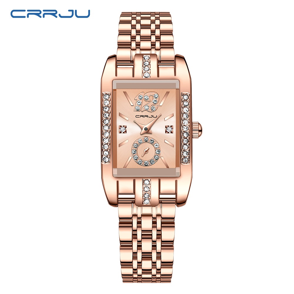CRRJU Original Mulheres Relógio Top Luxo Aço Inoxidável Quadrado Mostrador Único Moda Casual Negócios Quartzo À Prova D'