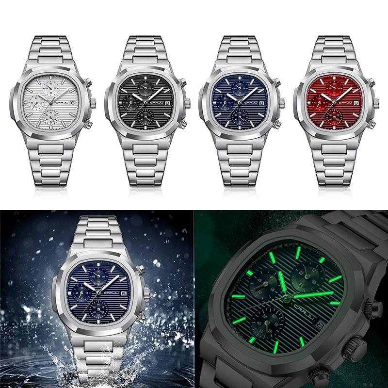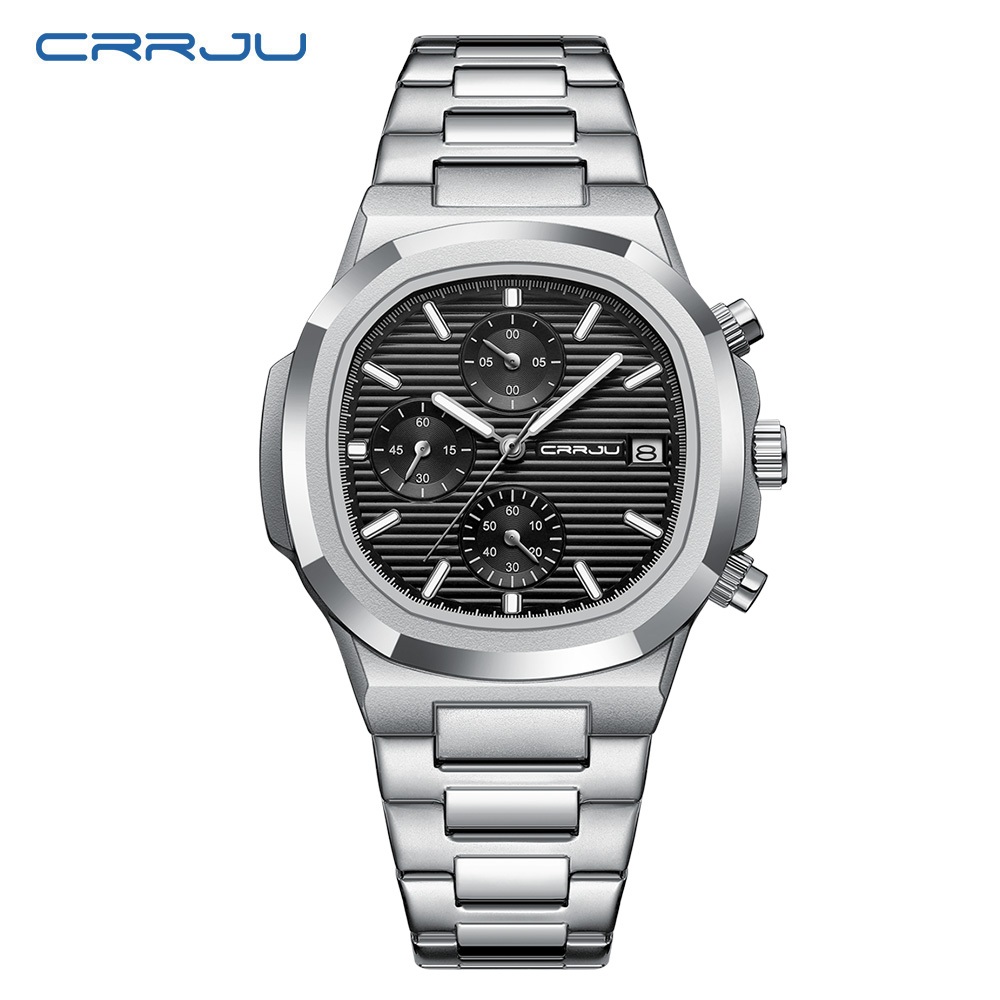 CRRJU Relógio Masculino Marca Original Multifuncional Cronógrafo Pulseira De Aço Inoxidável Luminosa Moda 2319 XS
