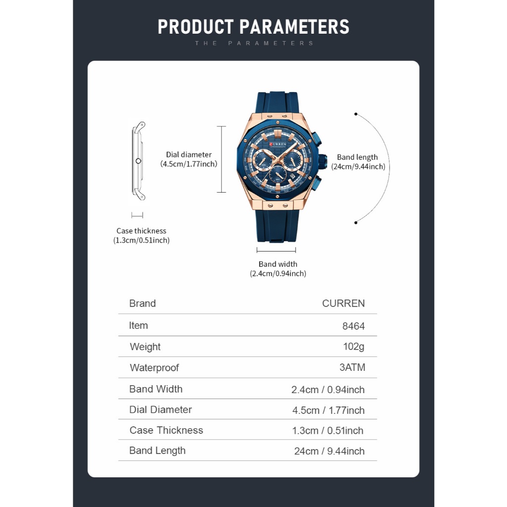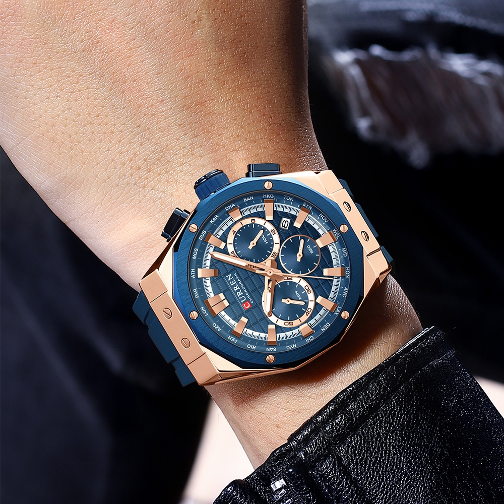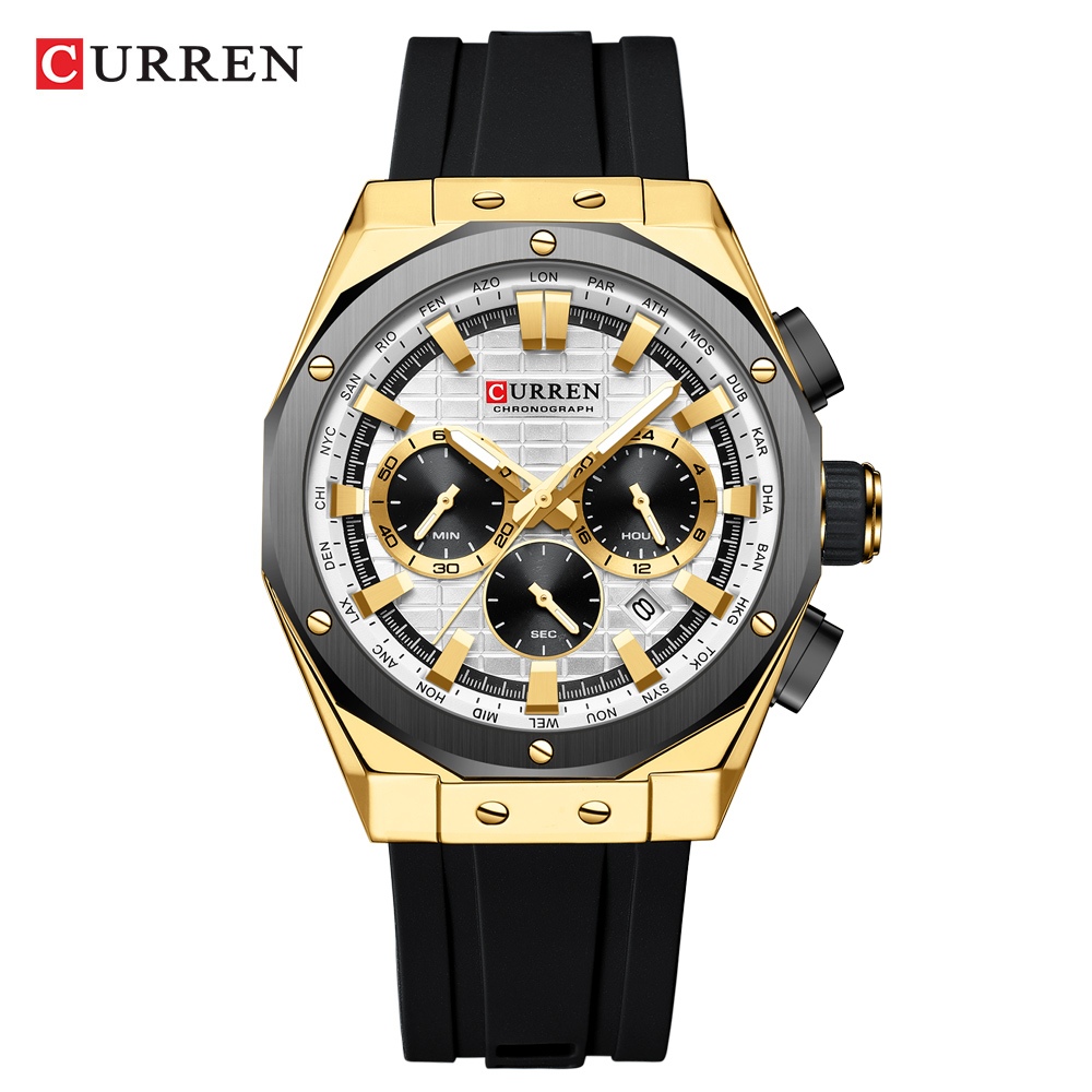 CURREN Relógio Masculino Marca Original Chronograph Ponteiros Luminosos Casual Correia De Silicone Moda Esportiva Quartzo À Prova D'água 8464 XM