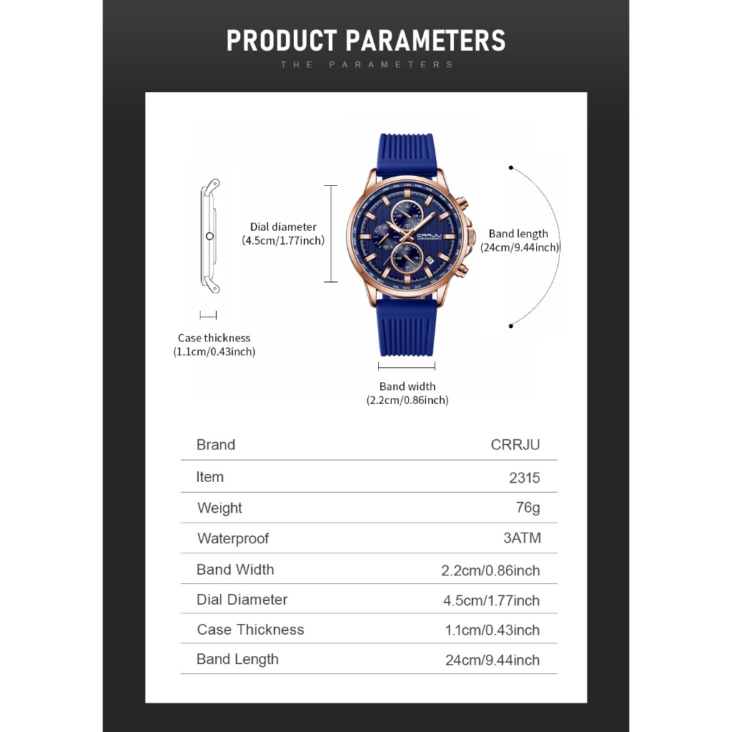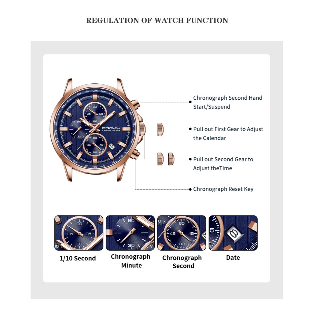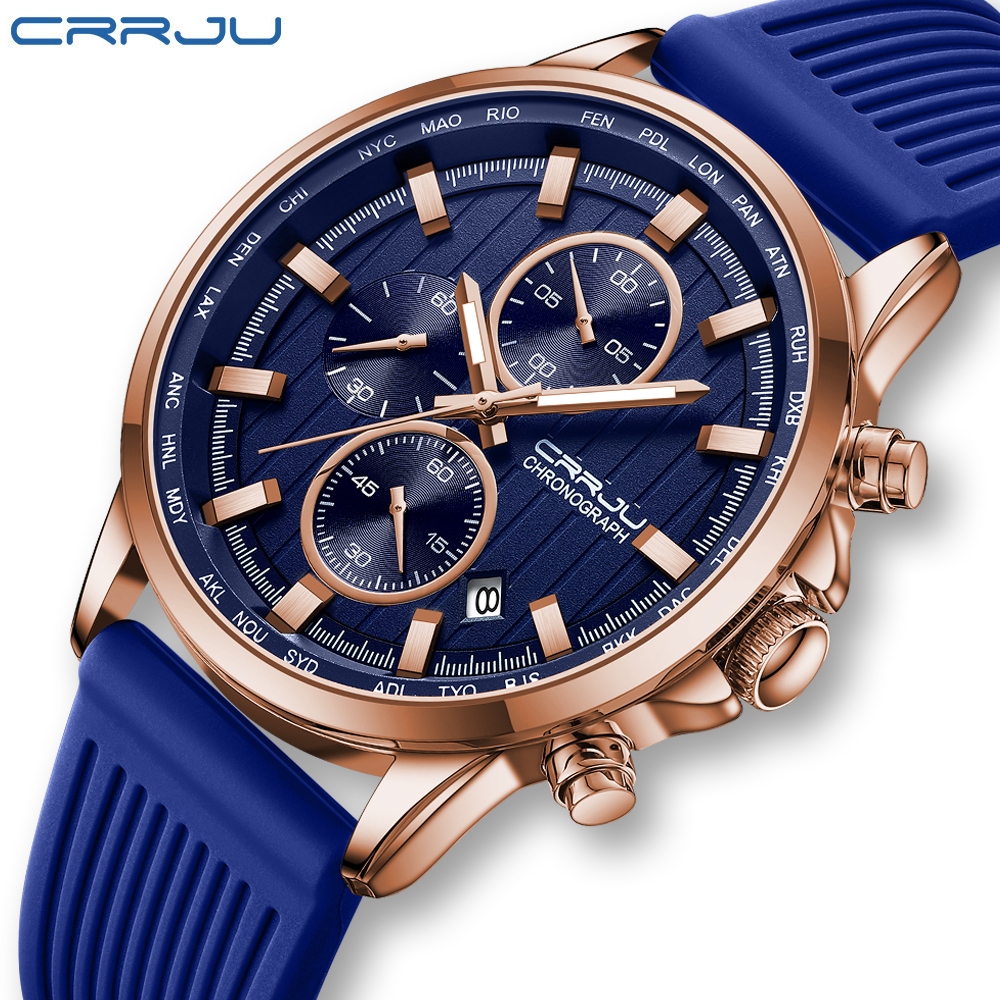 CRRJU Marca Original Relógios Masculinos Luminosos Multifuncionais Moda Casual Negócios Silicone Couro Quartzo À Prova D