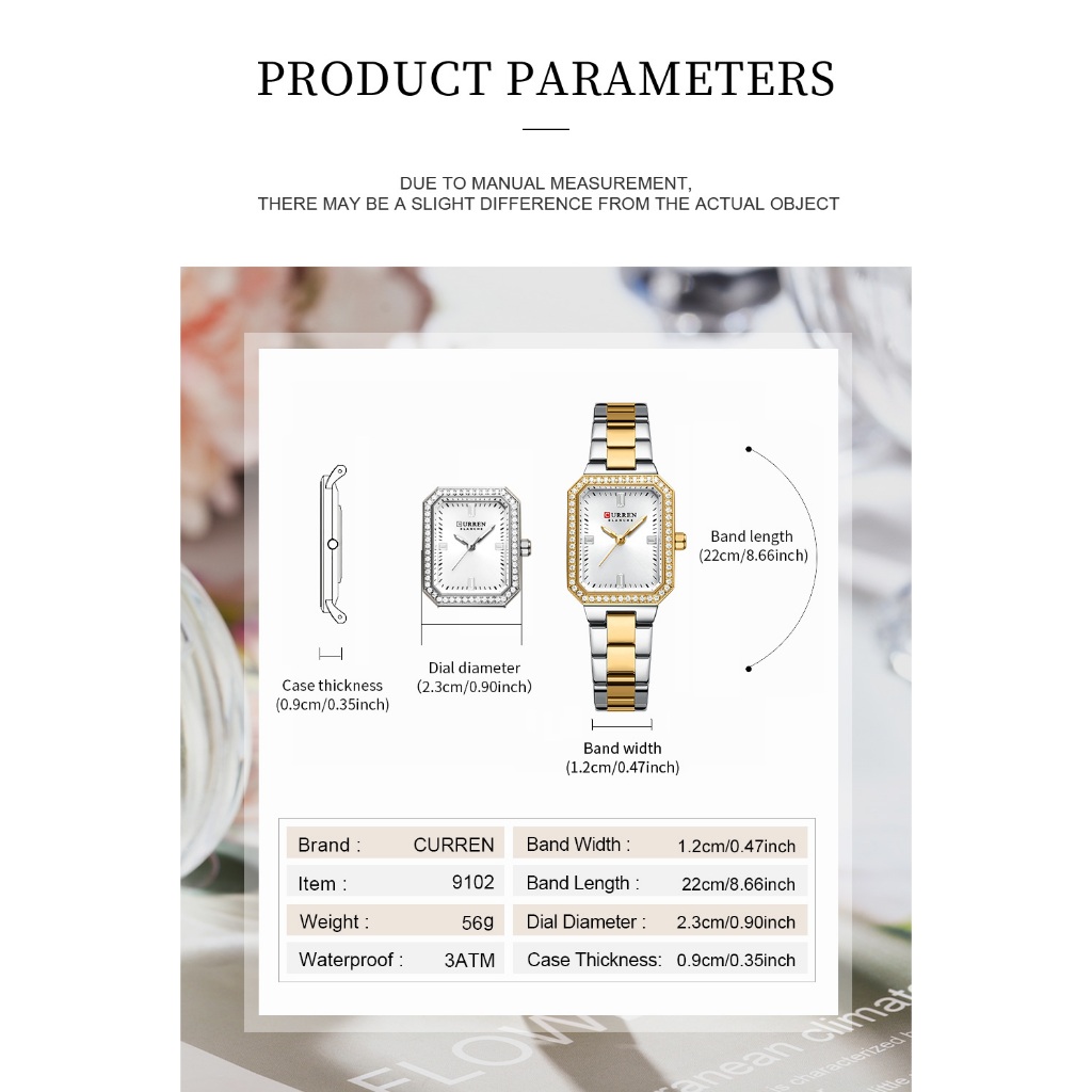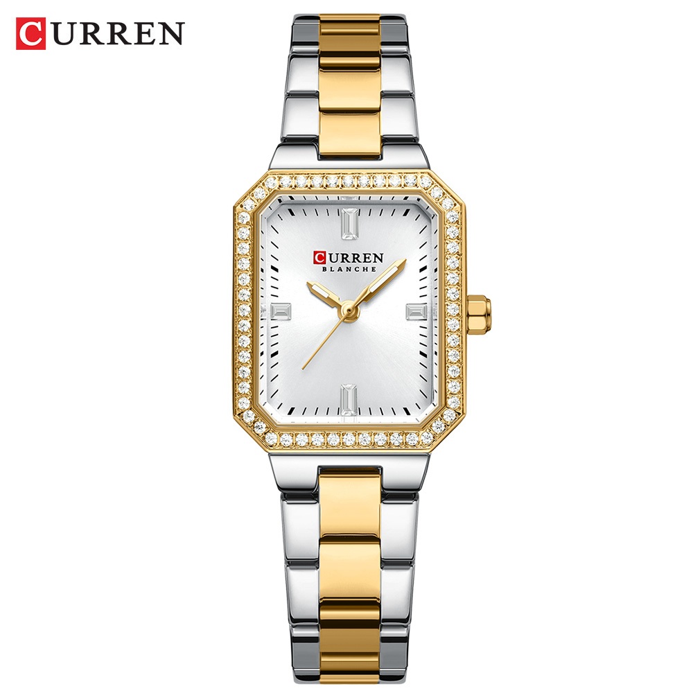 CURREN Relógio Feminino Novo Quadrado Design Exclusivo Aço Inoxidável Moda Luxo Quartzo À Prova D'água 9102 X