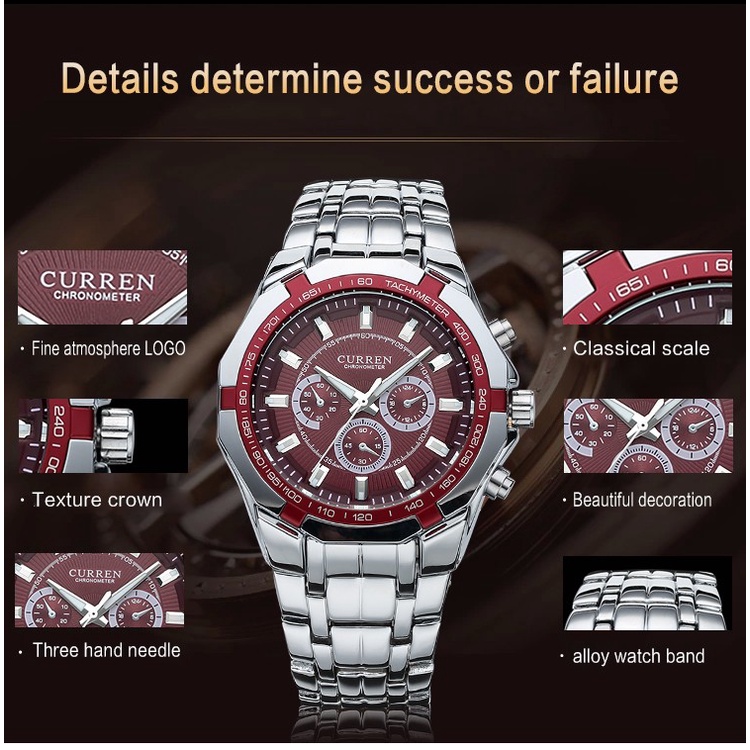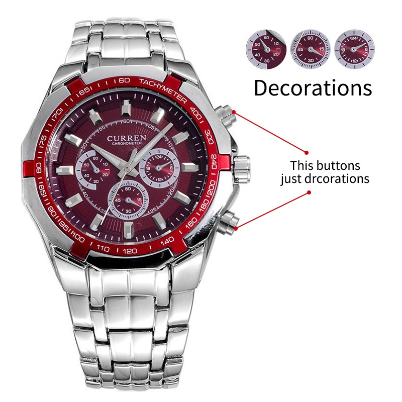 Curren Mens Relógios Top Marca De Luxo Aço Inoxidável Quartzo Moda Esporte À Prova D'água 8084 X