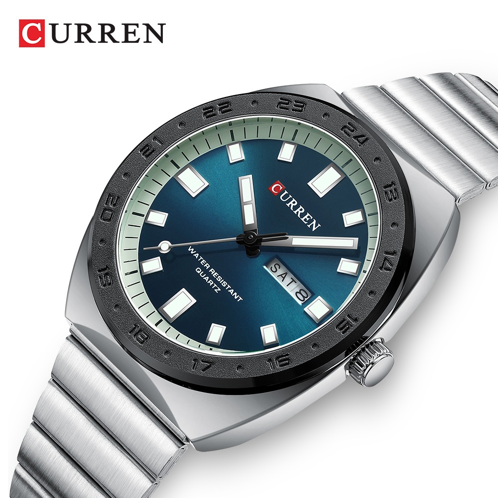 CURREN Relógio Masculino Com Pulseira De Aço Inoxidável , Simples , Casual , Exclusivo , Luminoso , Mostrador De Mãos