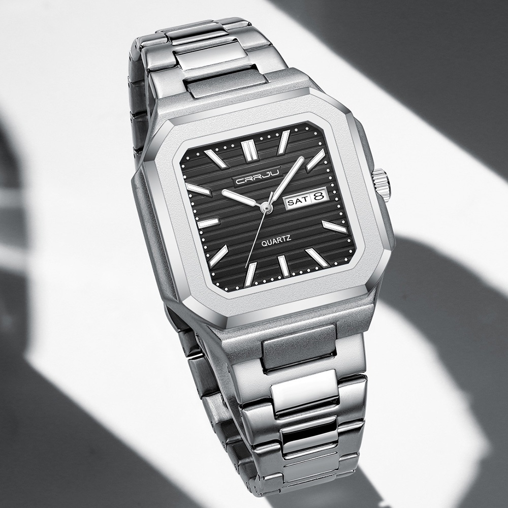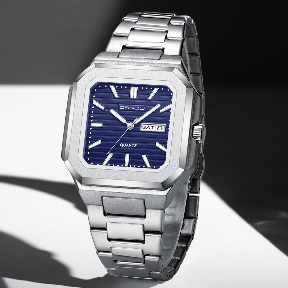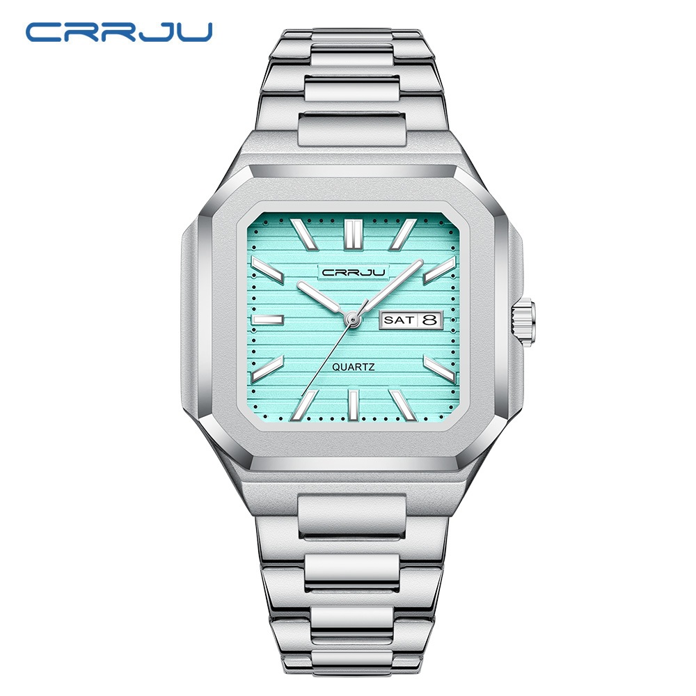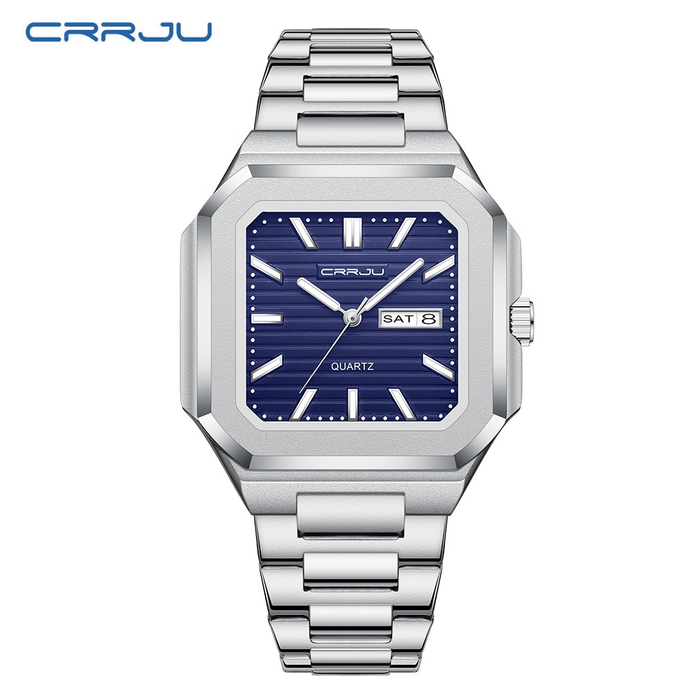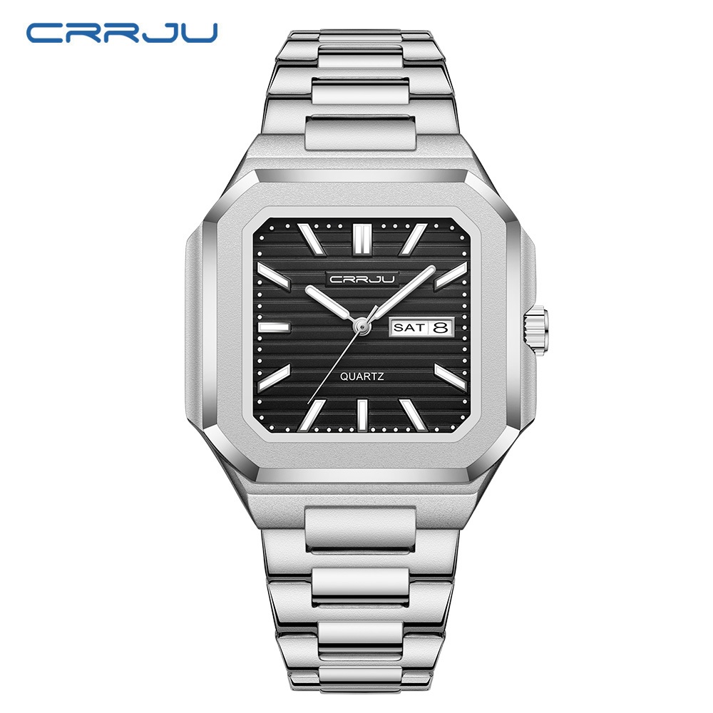 Relógio Masculino CRRJU Autêntico Marca Nova Moda Pulseira De Aço Inoxidável Mãos Luminosas Único Minimalista Grande Mos