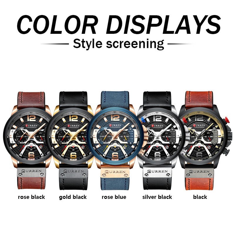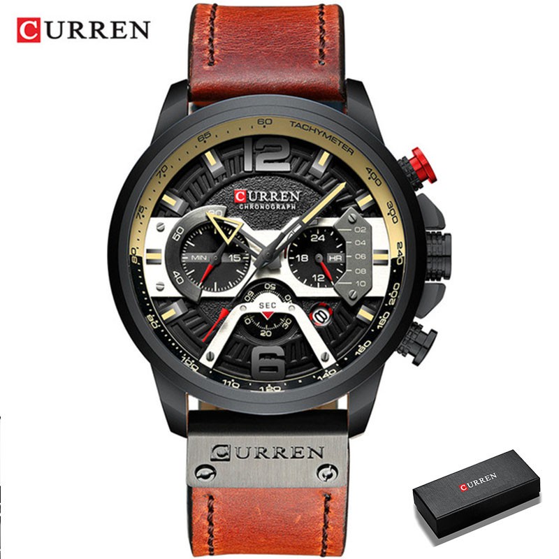 Curren Homens Relógios Esportivos Casuais Para Top Marca Luxo Militar Couro Moda à prova d'água 8329