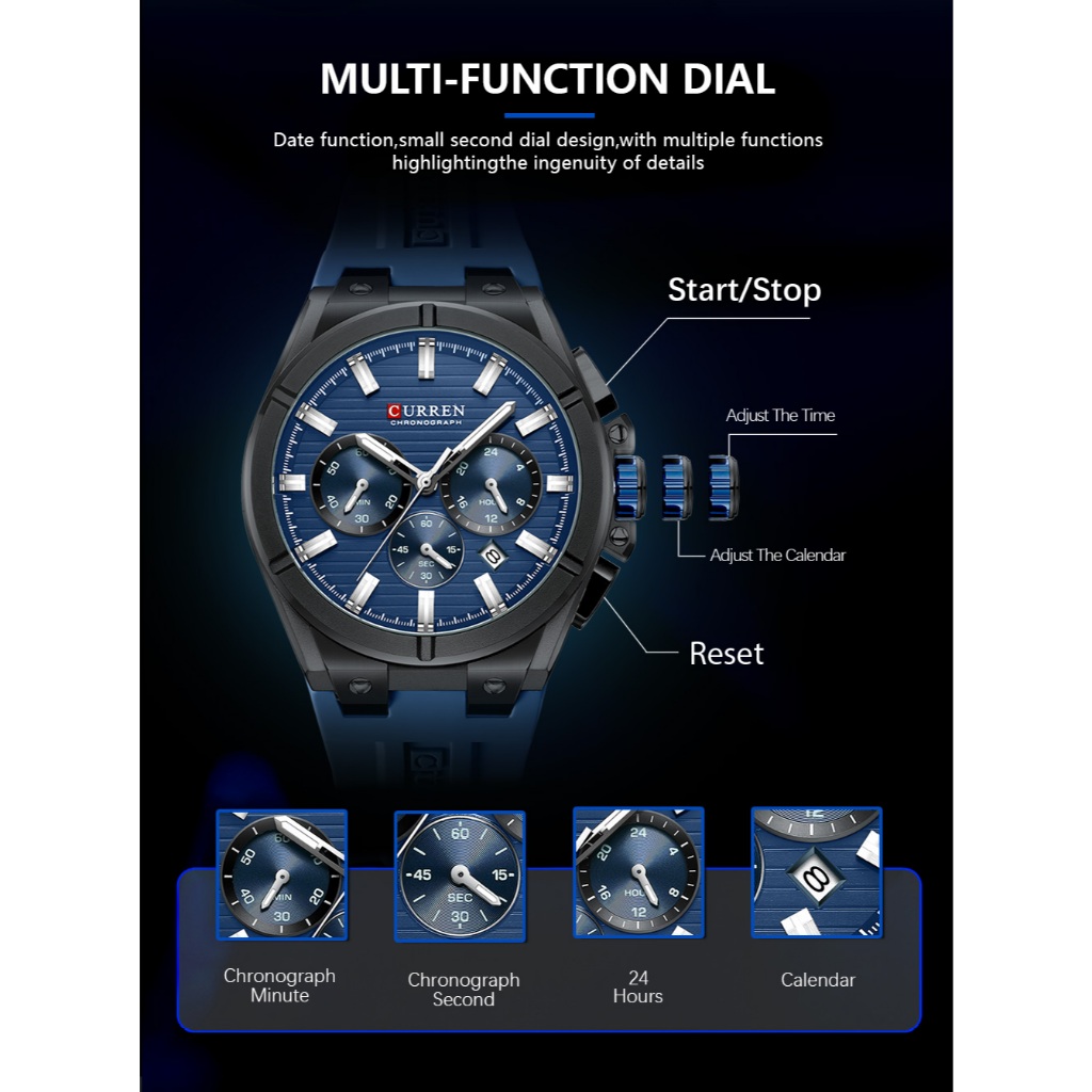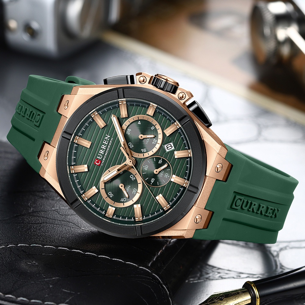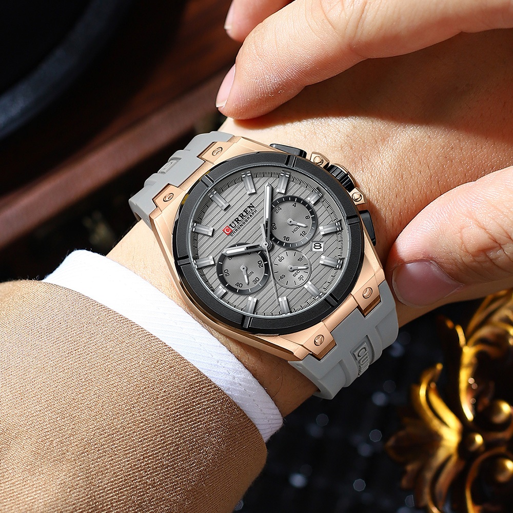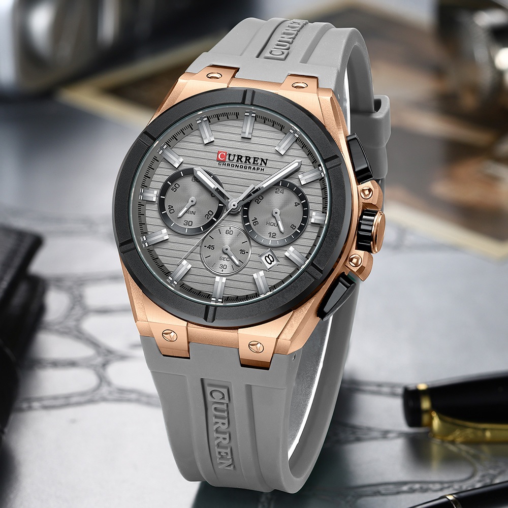 Relógio Masculino-Genuíno CURREN Top Novo Cronógrafo Multifuncional Mãos Luminosas Moda Negócios Pulseira De Silicone Ca