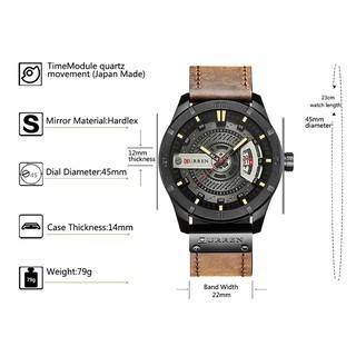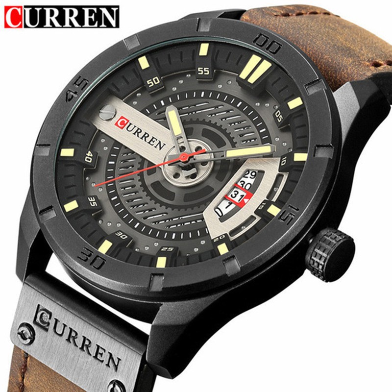 Curren Relógio Masculino Luxuoso De Quartzo Com Pulseira De Couro À Prova D 'Água 8301xs