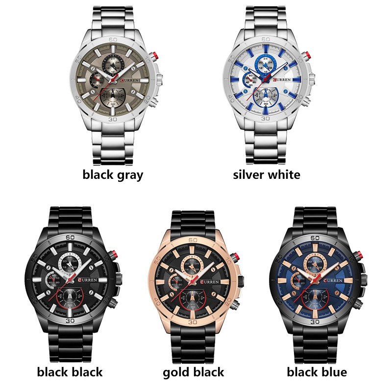 Curren Homens Relógios Moda Completa Aço Inoxidável Top Marca Casual Analógico Esporte Quartzo 8275