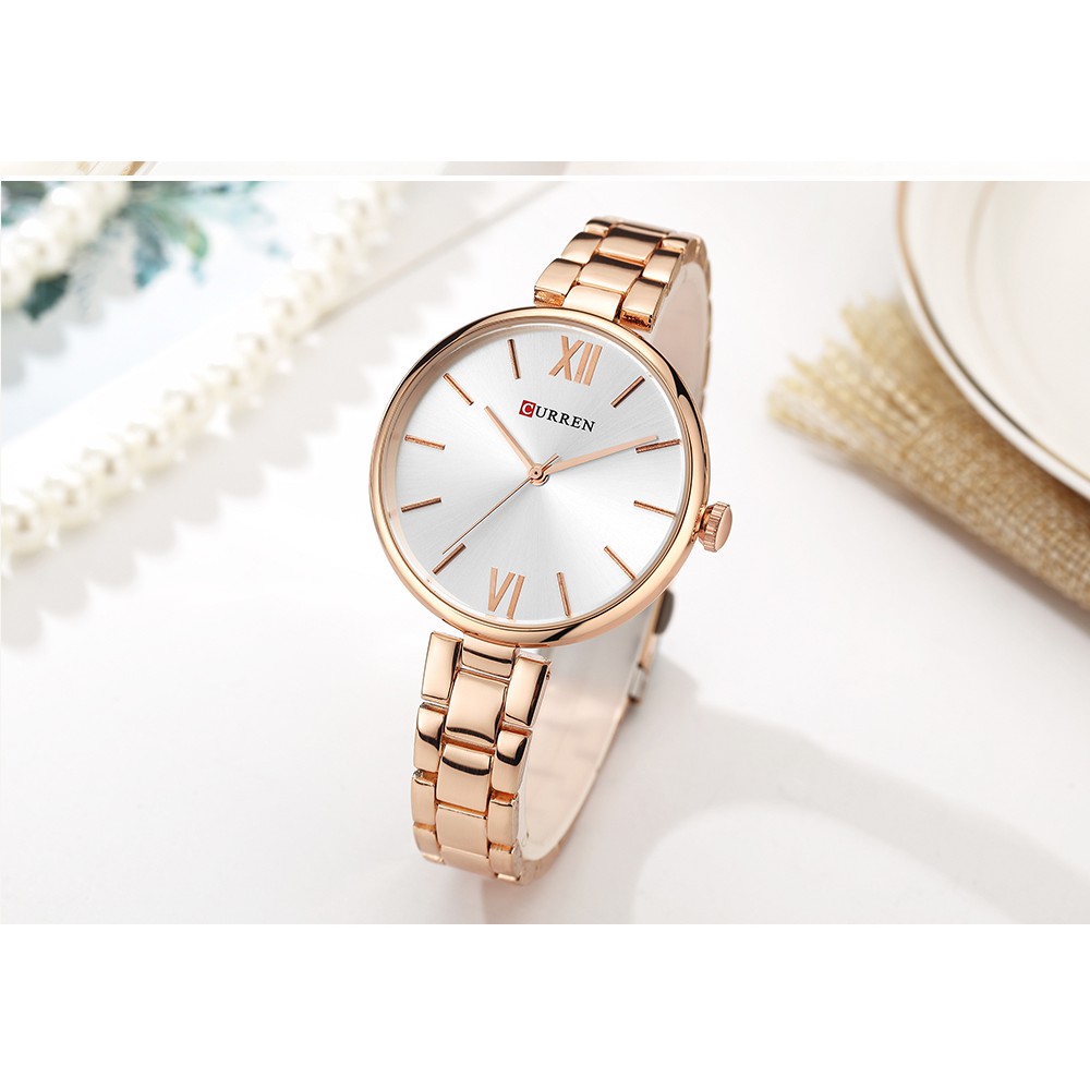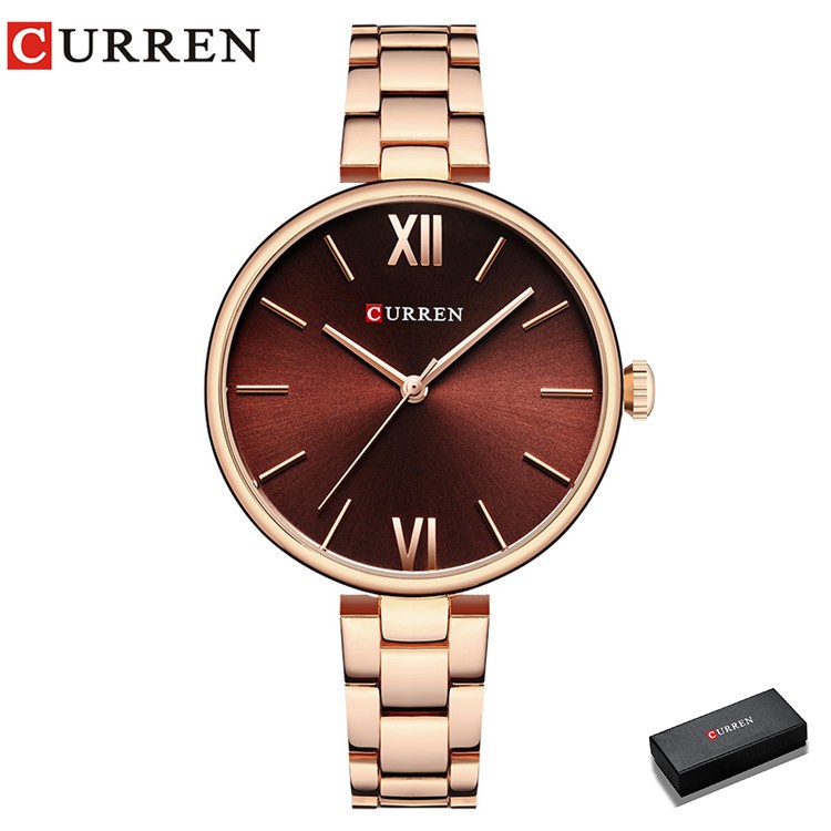 Curren Relógio De Moda Feminino Moeda Luxo Reloj Mujer Pulseira De Aço Inoxidável Quartzo 9017
