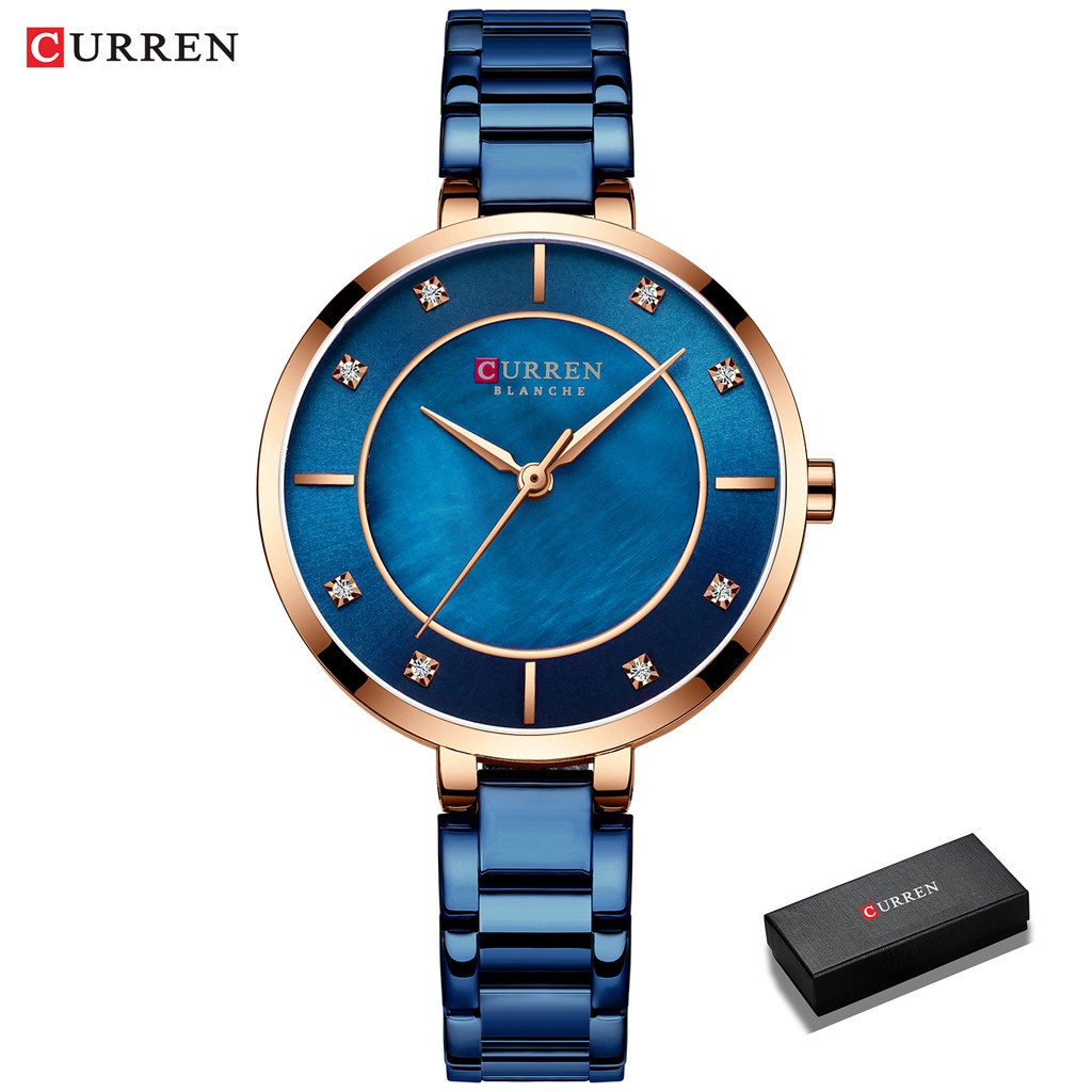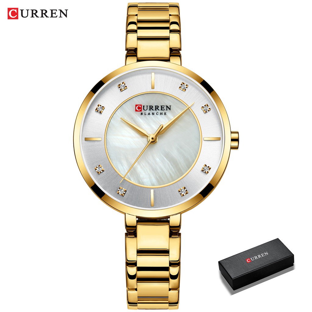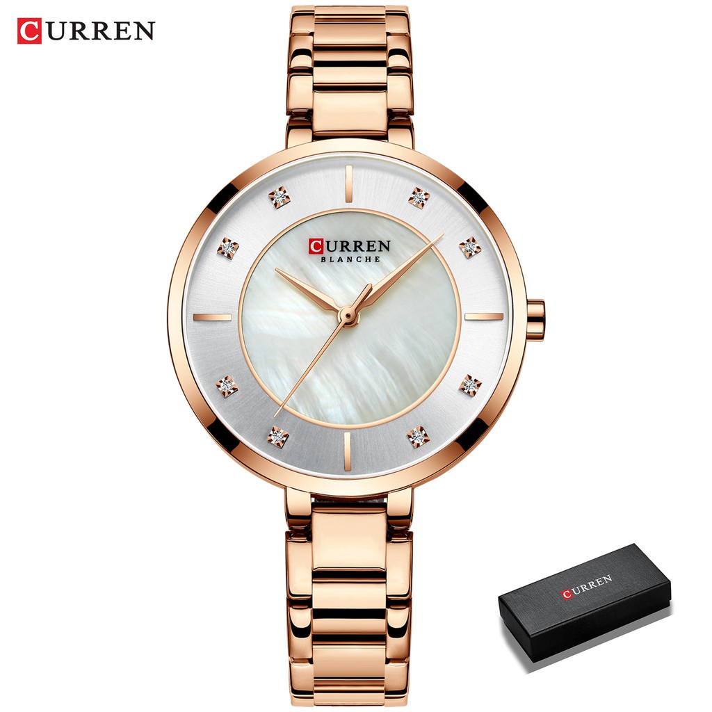 Curren Senhoras Relógios Moda Elegante De Quartzo Em Ouro Rosa De Aço 9051