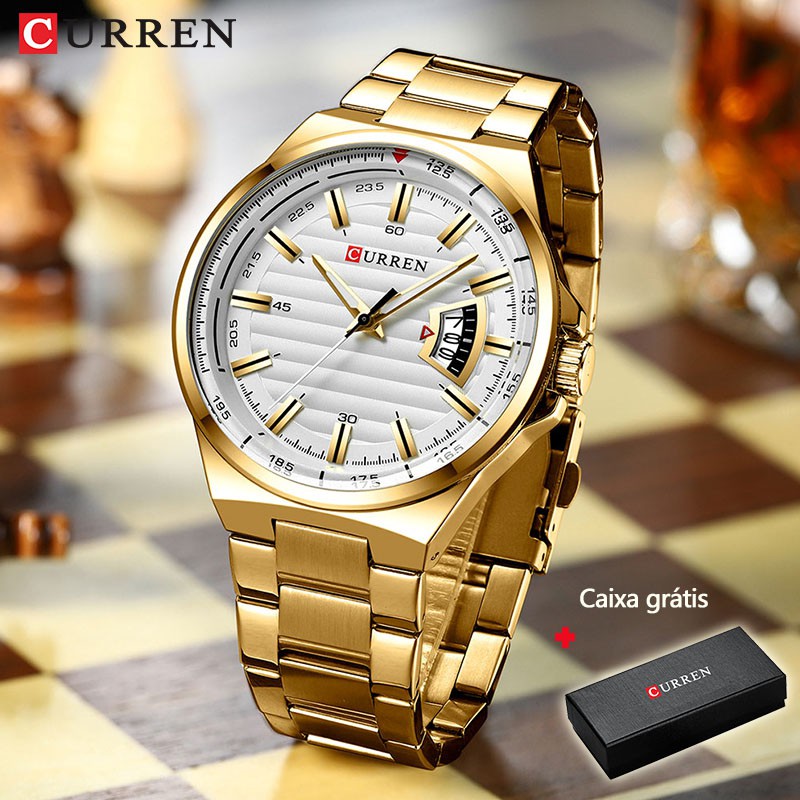 CURREN Relógio De Quartzo Masculino De Aço Inoxidável Com Data Automático/À Prova D'água 8375