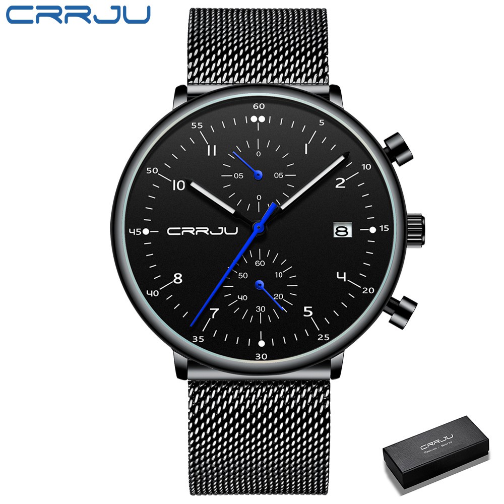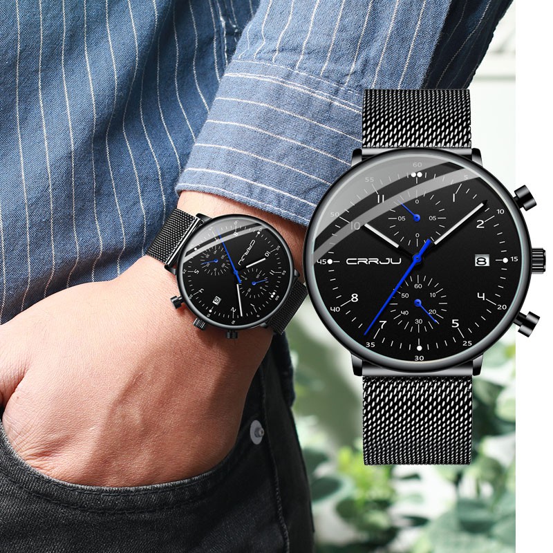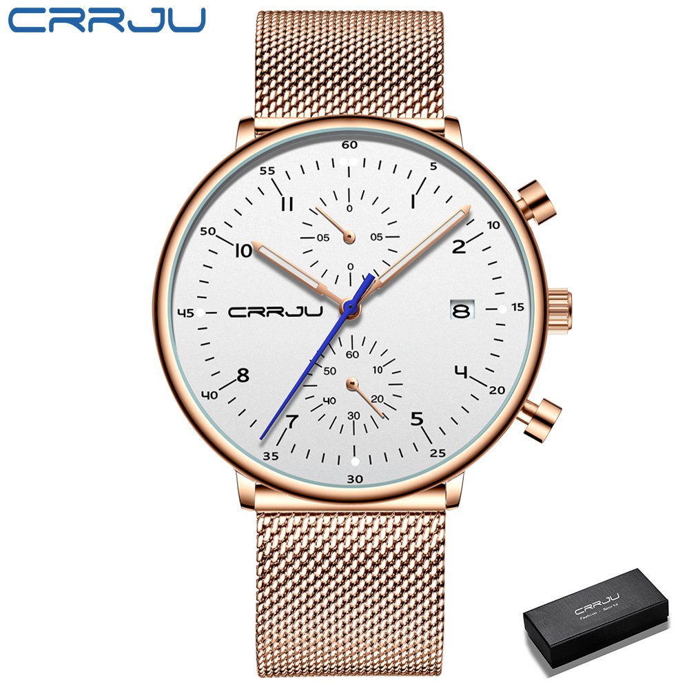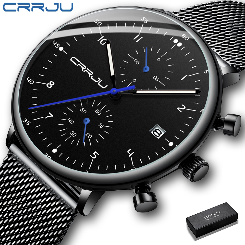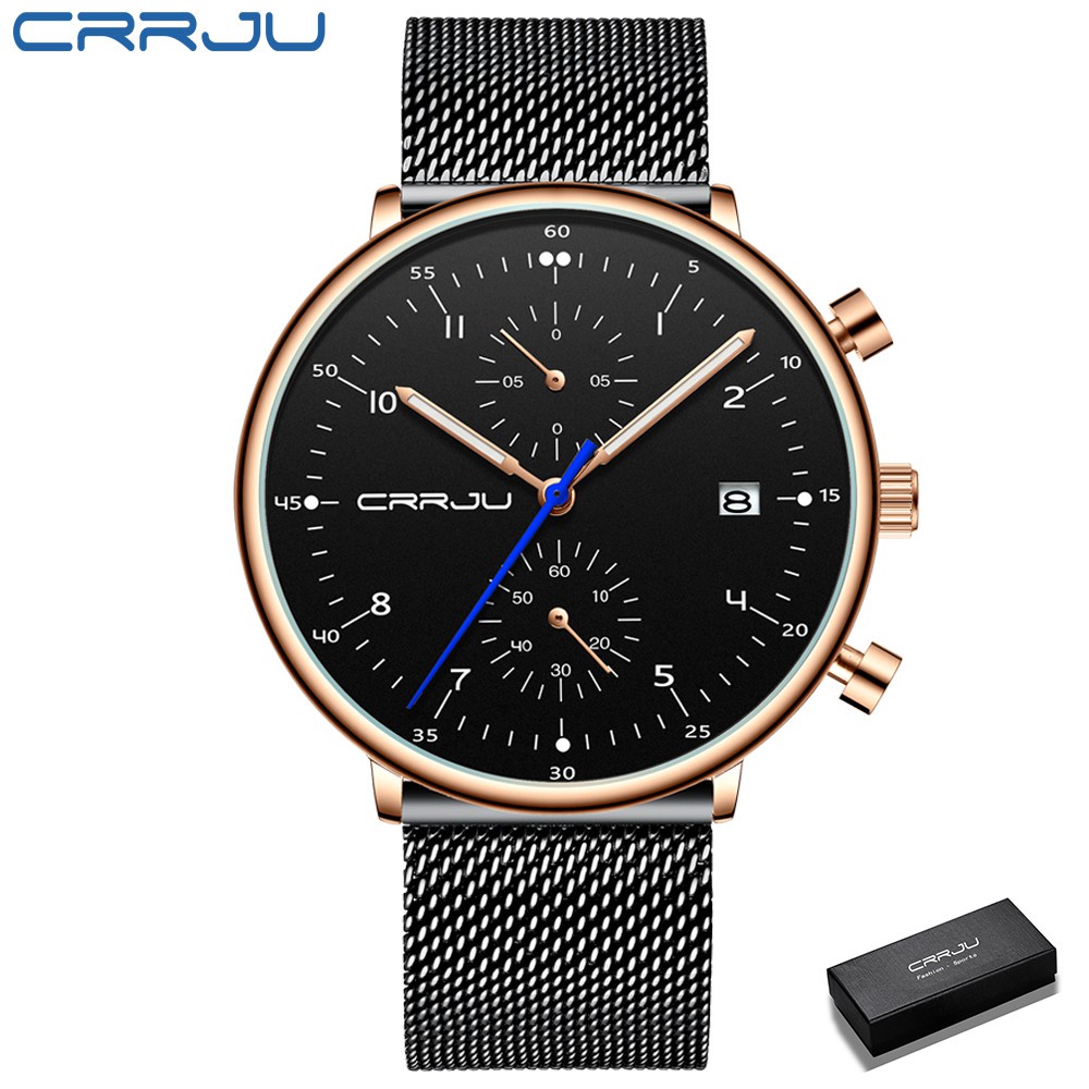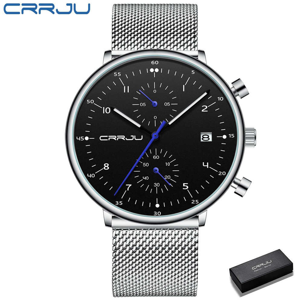 CRRJU Homens Relógios De Aço Inoxidável Quartzo Moda Casual 2278
