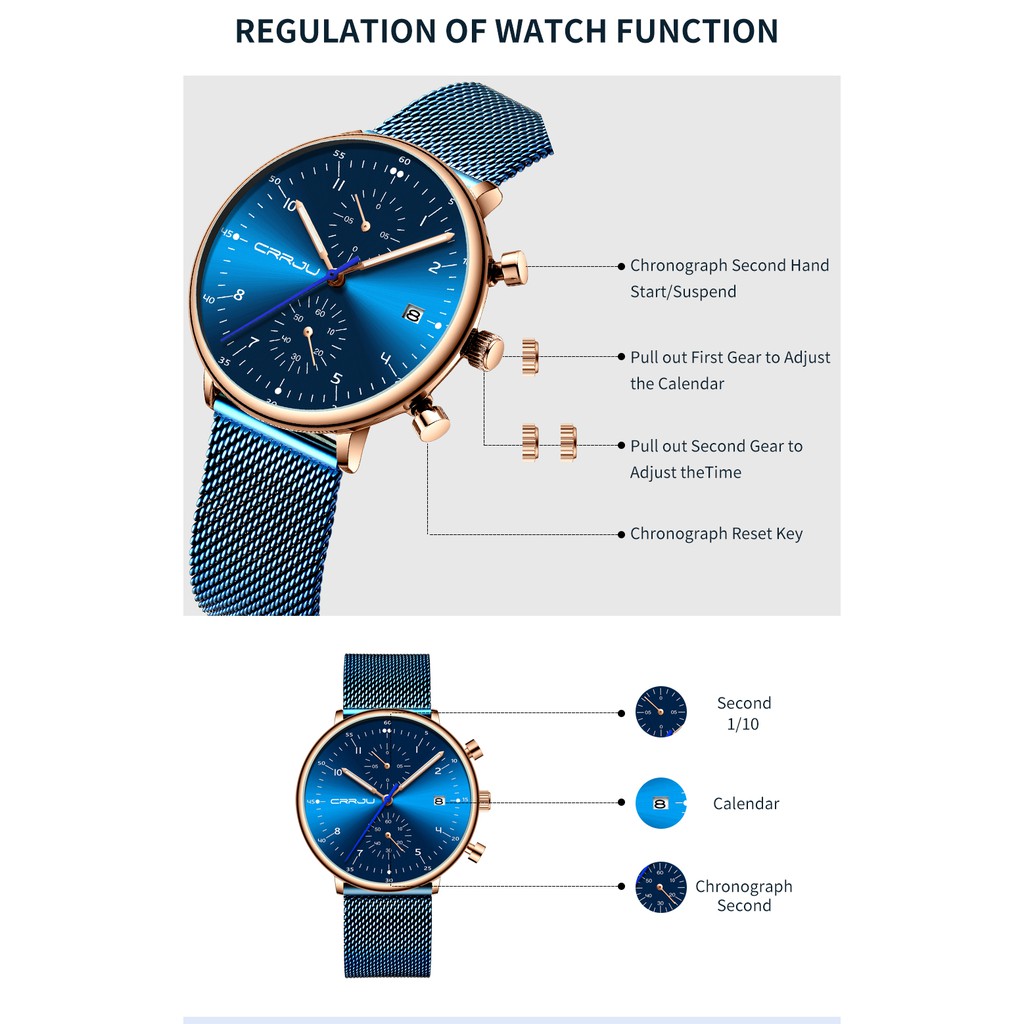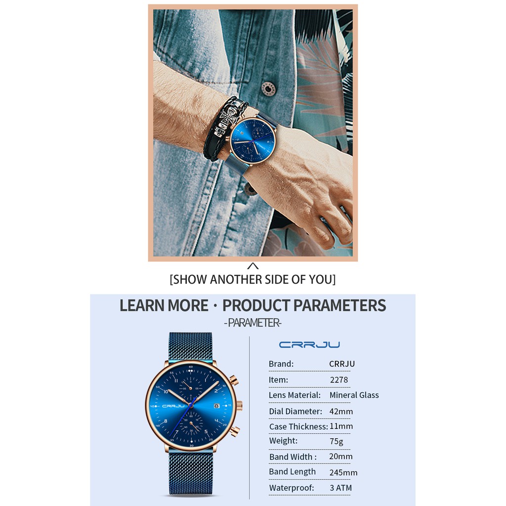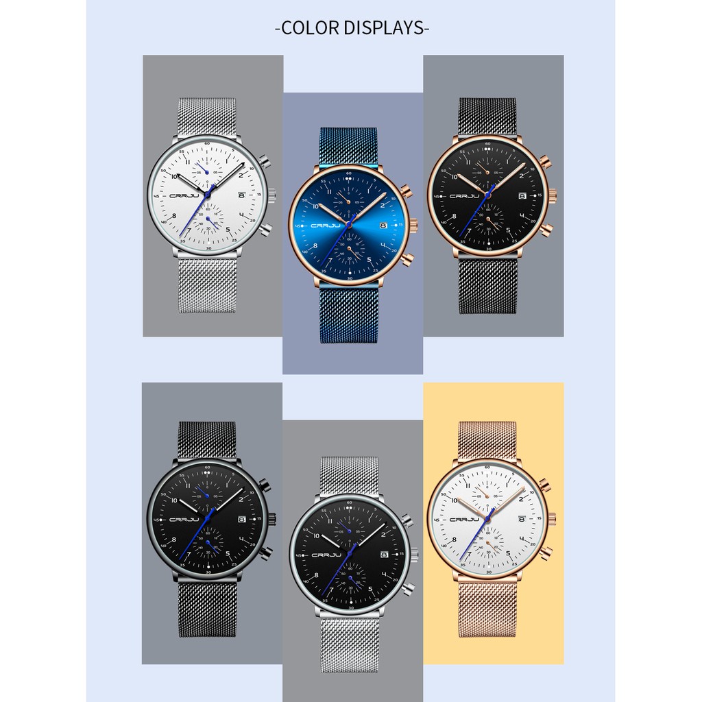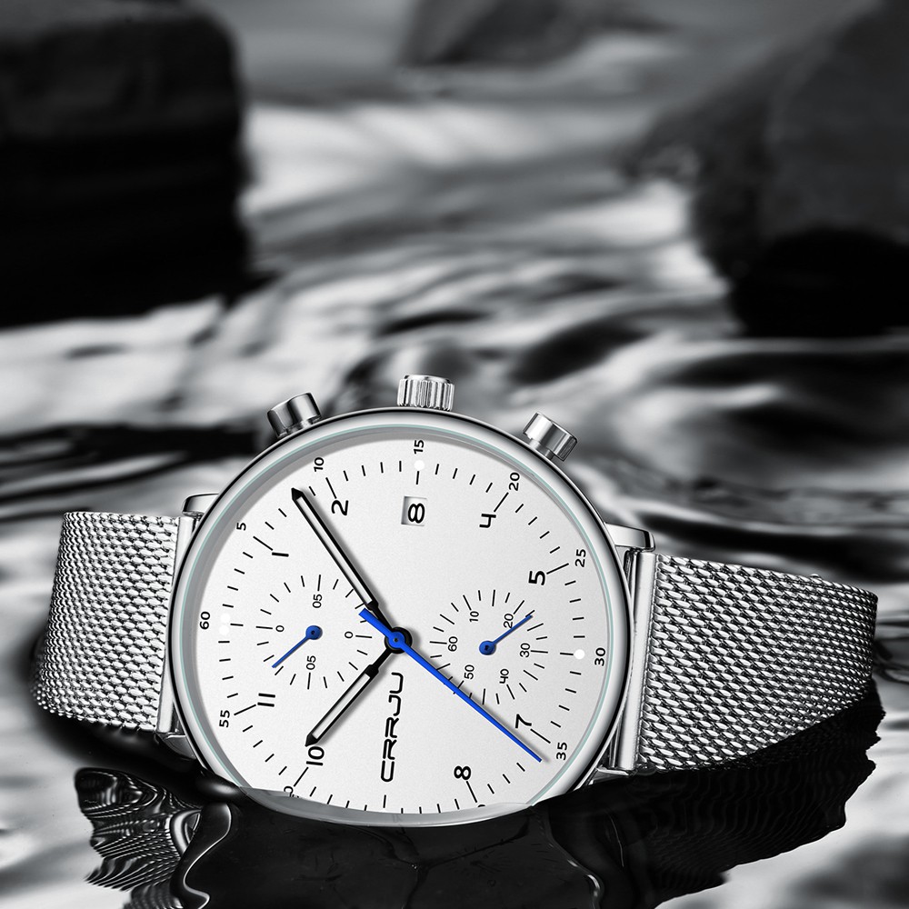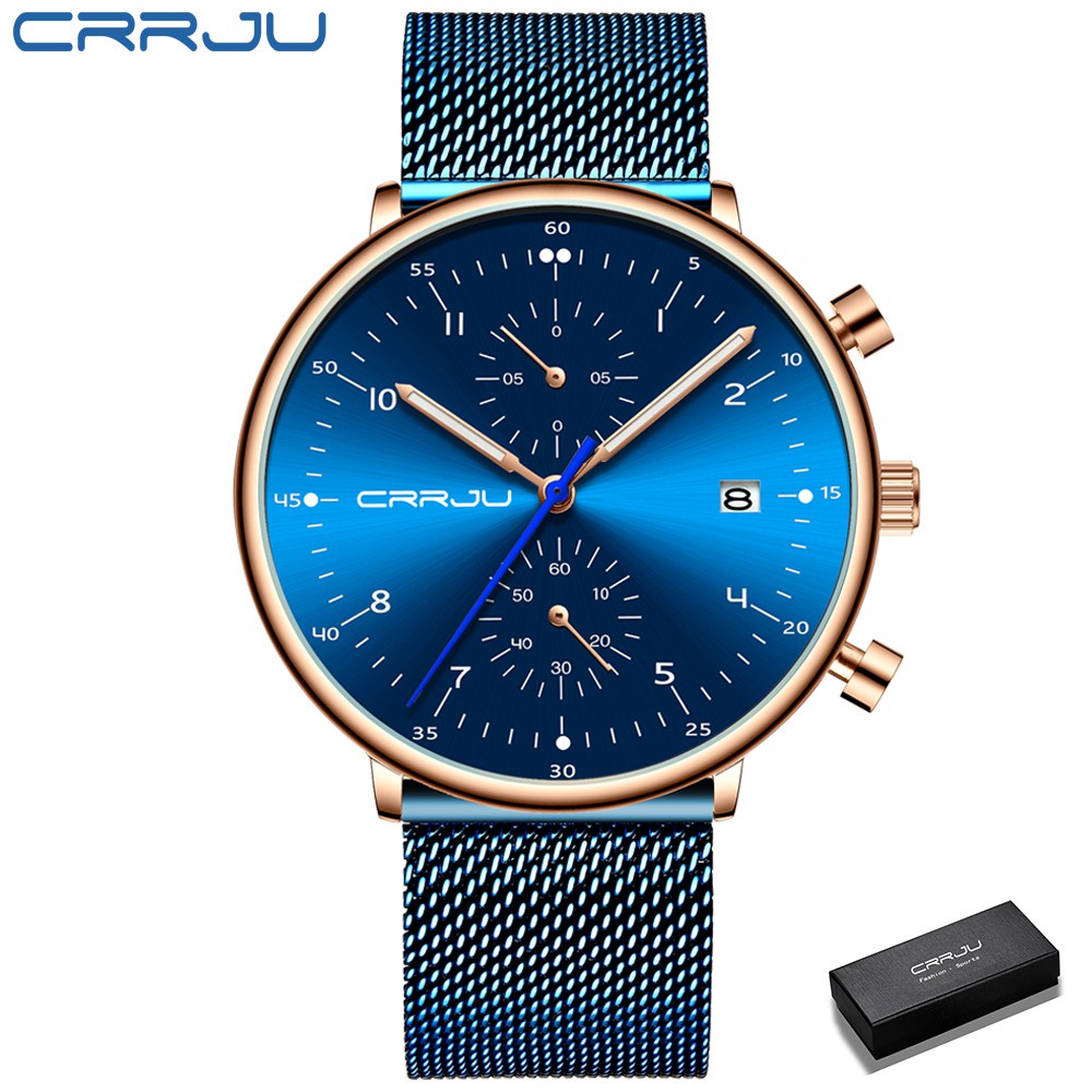 CRRJU Homens Relógios De Aço Inoxidável Quartzo Moda Casual 2278
