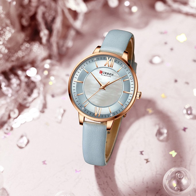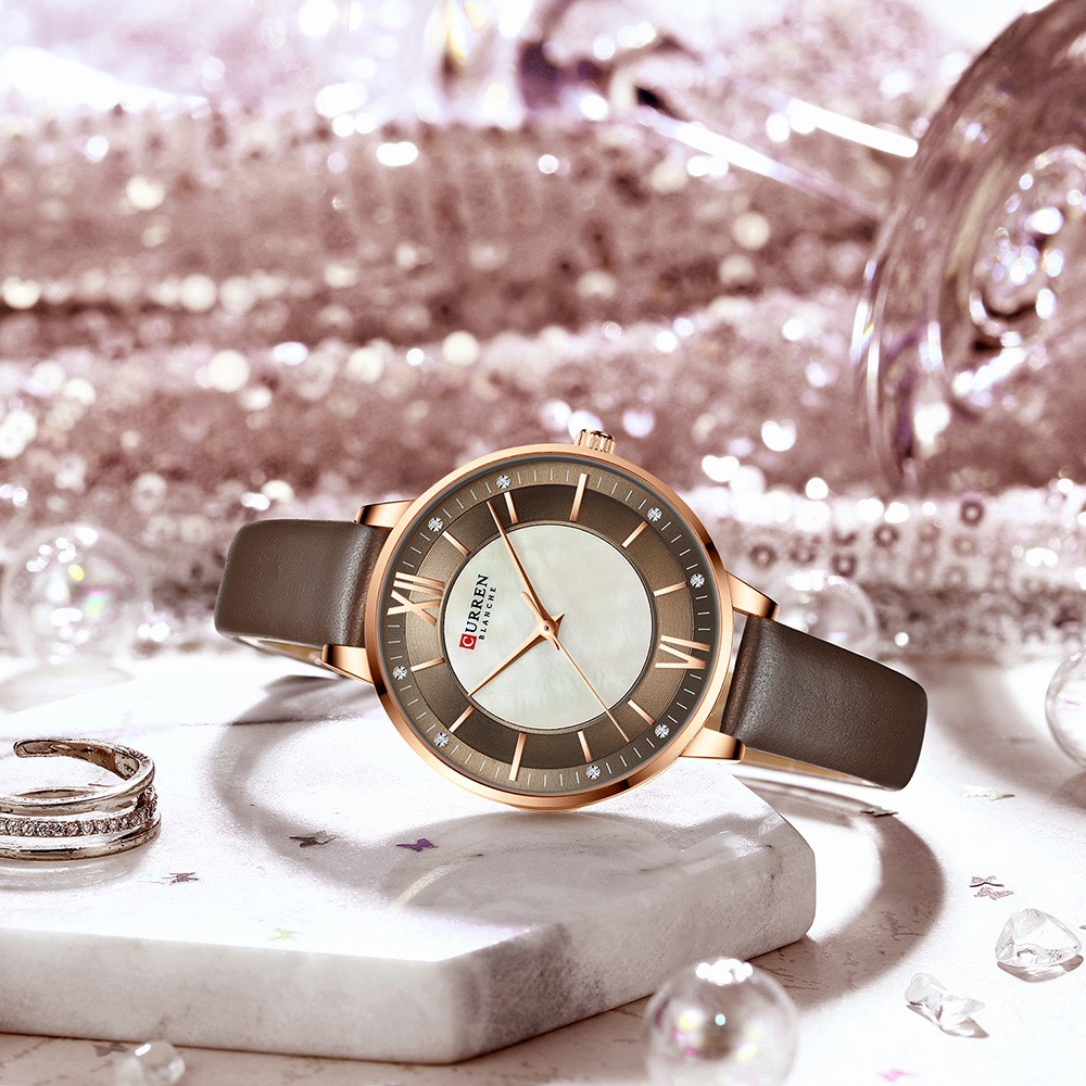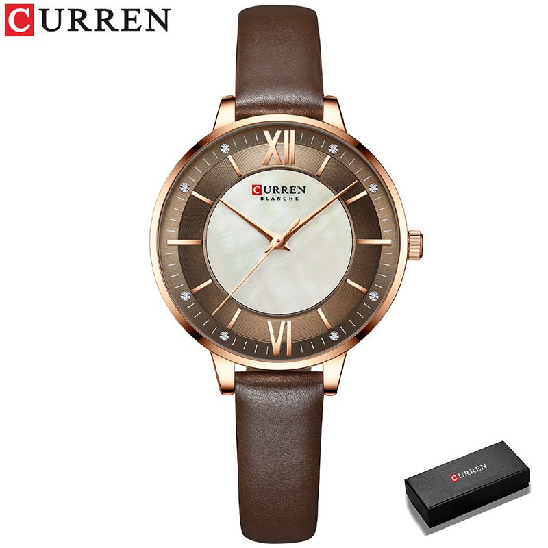 Curren Relógio De Pulso De Quartzo Com Strass Stras De Couro 9080 l