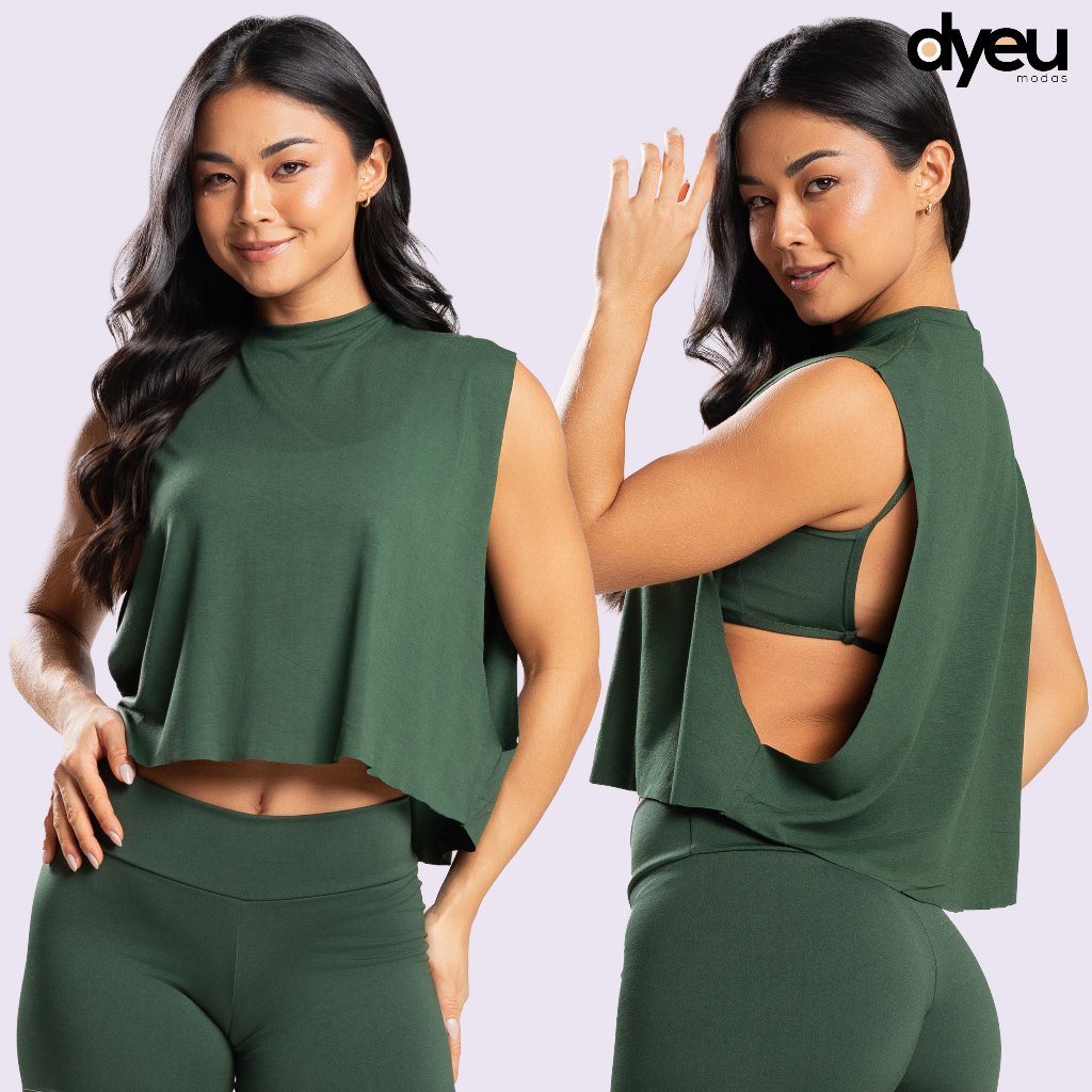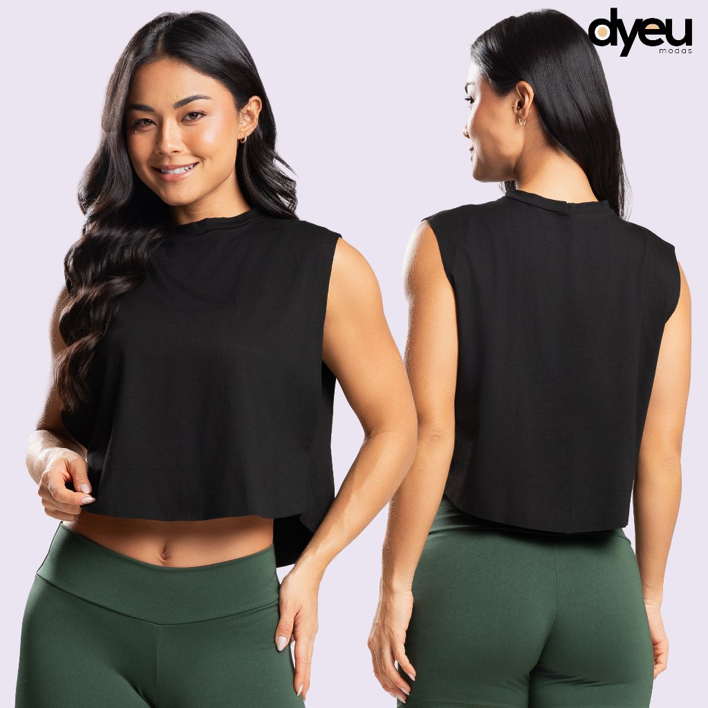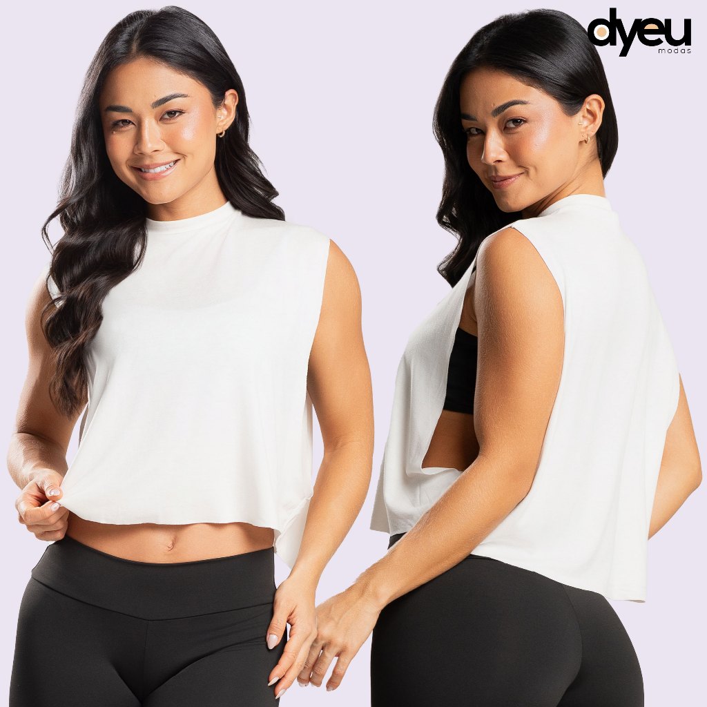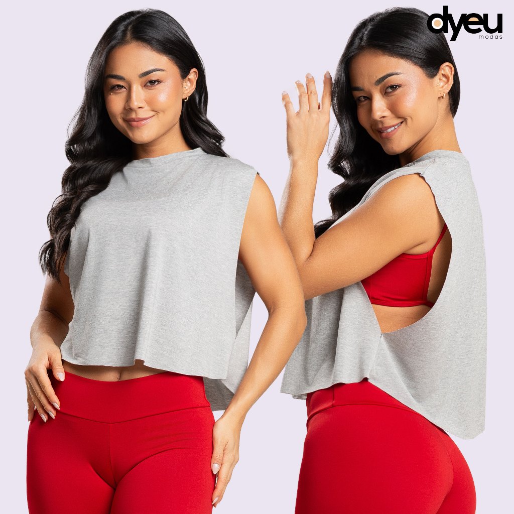 Camiseta Cropped Fitness Feminina Academia Regata Cavada Crossfit Dyeu