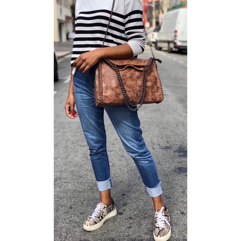 Bolsa Stella Feminina Grande Camurça Ombro Com Alça De Corrente