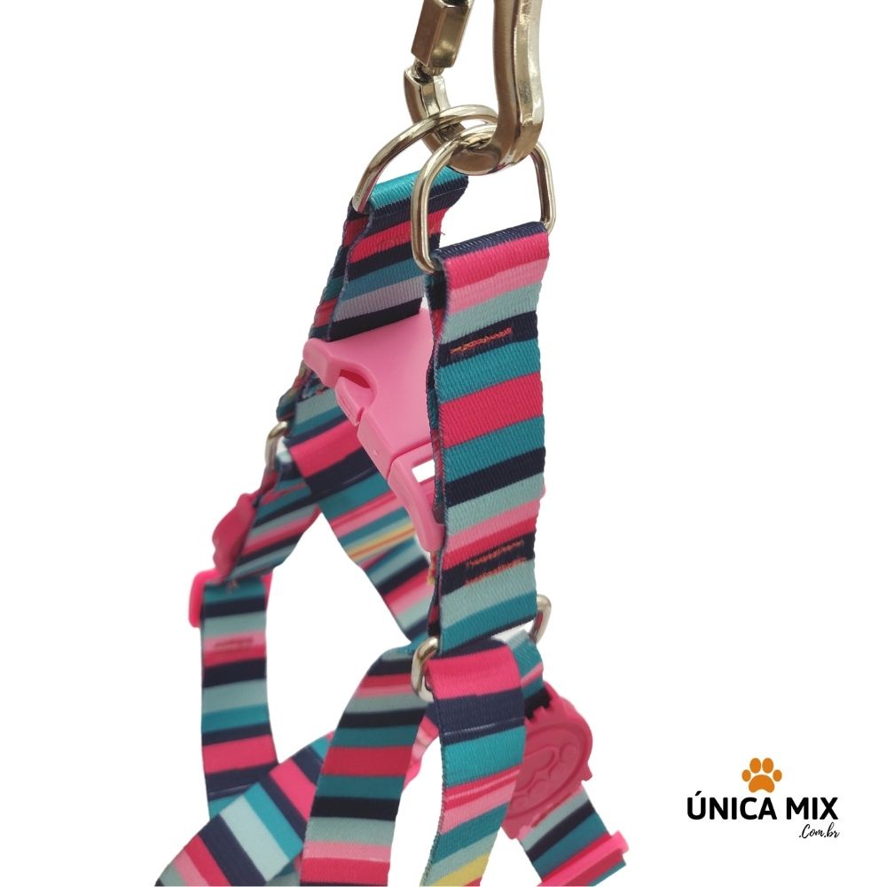 Coleira para Cachorro Peitoral Americano Pet com Guia e Trava Dupla de Segurança Rosa Adestramento