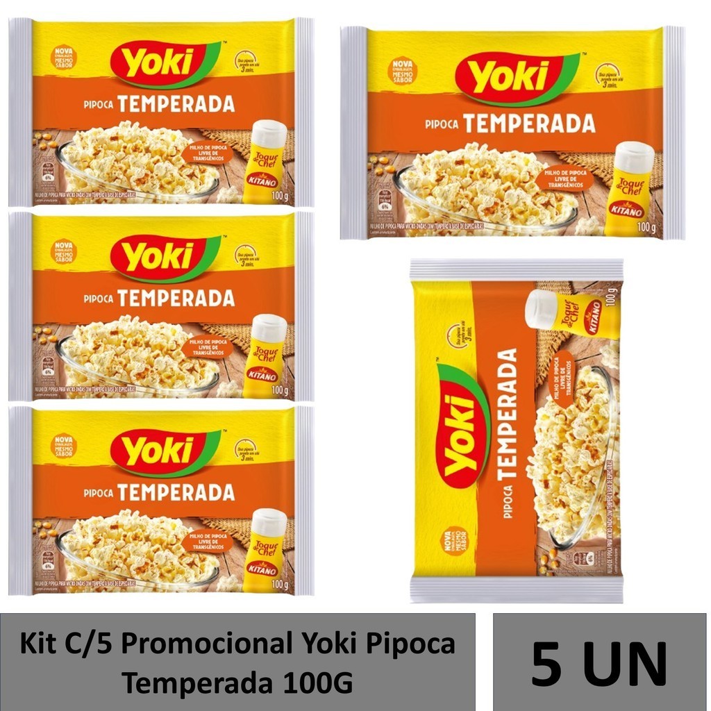 Kit C/5 Promocional Yoki Pipoca Temperada 100G