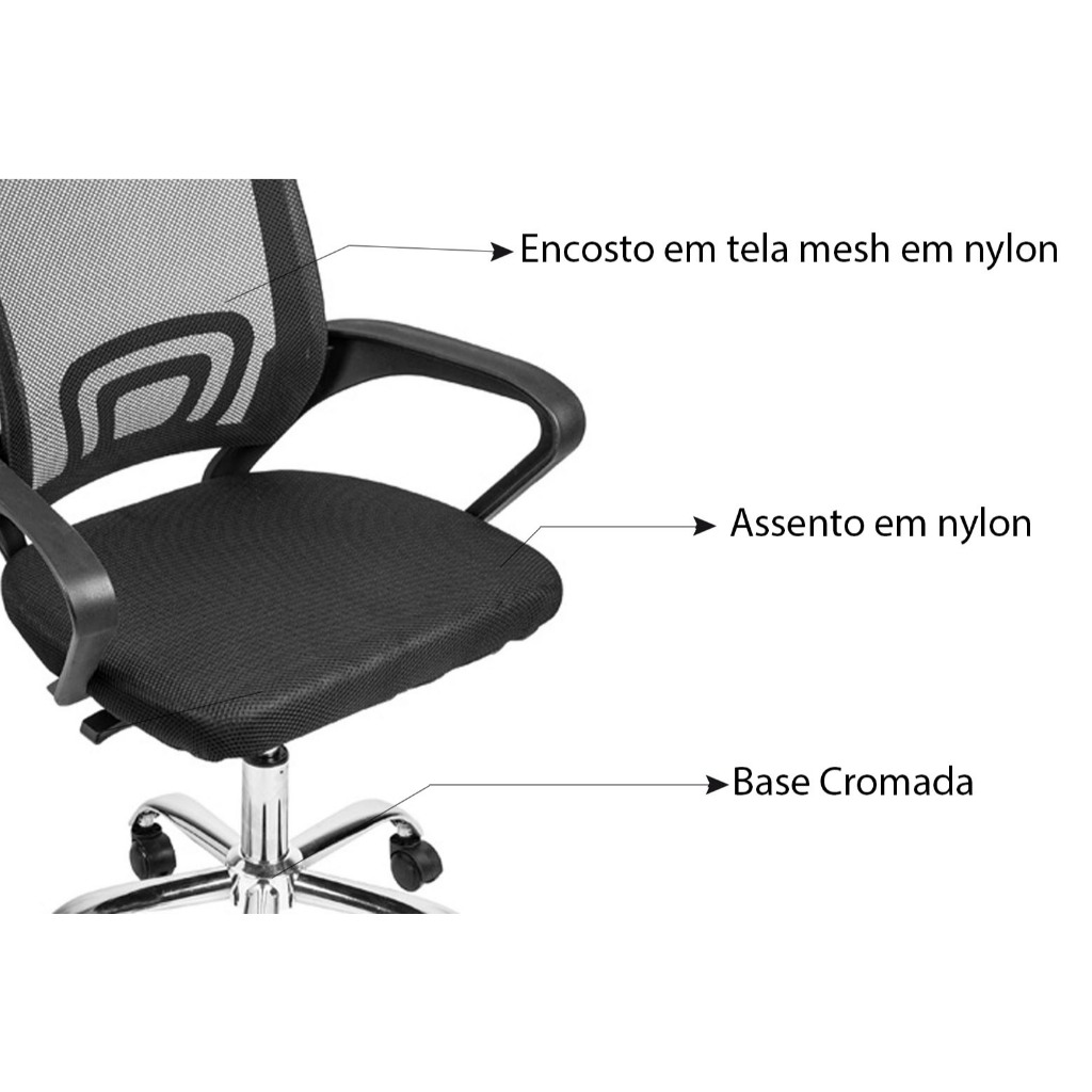 Cadeira de Escritório Tela Mesh Giratória Tok Boxbit assento estofado