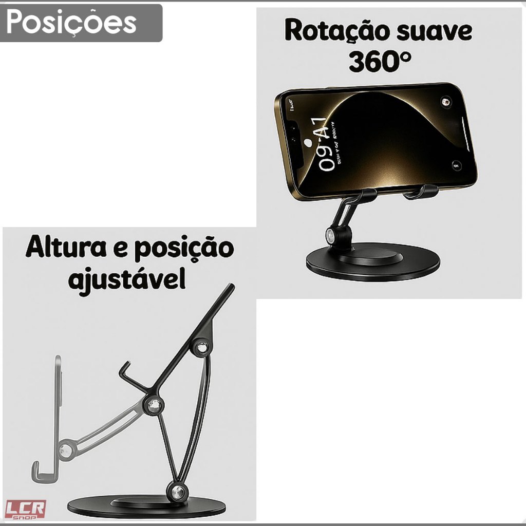 Suporte Base Para Celular E Tablet Alumínio Gira 360° Graus Rotatória Ajustável estudos loja