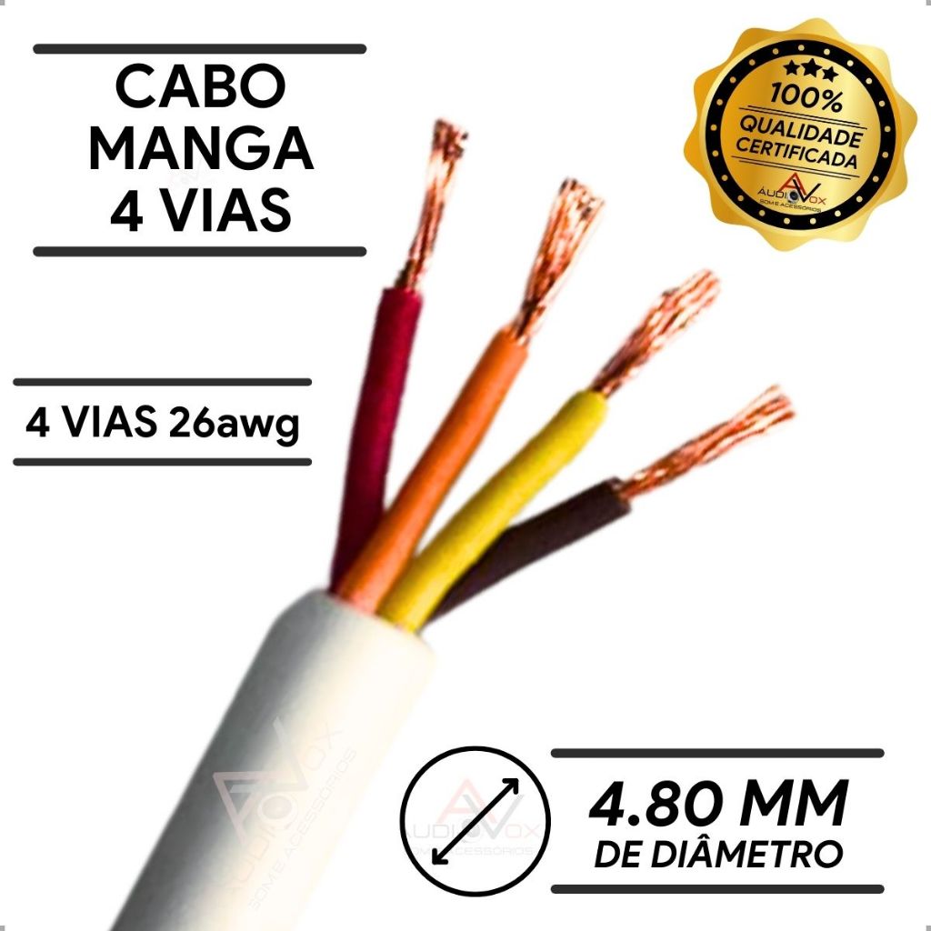 Cabo Manga 4 Vias 26awg Para Led Automação Piscina Refletor Strobo de Som Automotivo e Alarmes