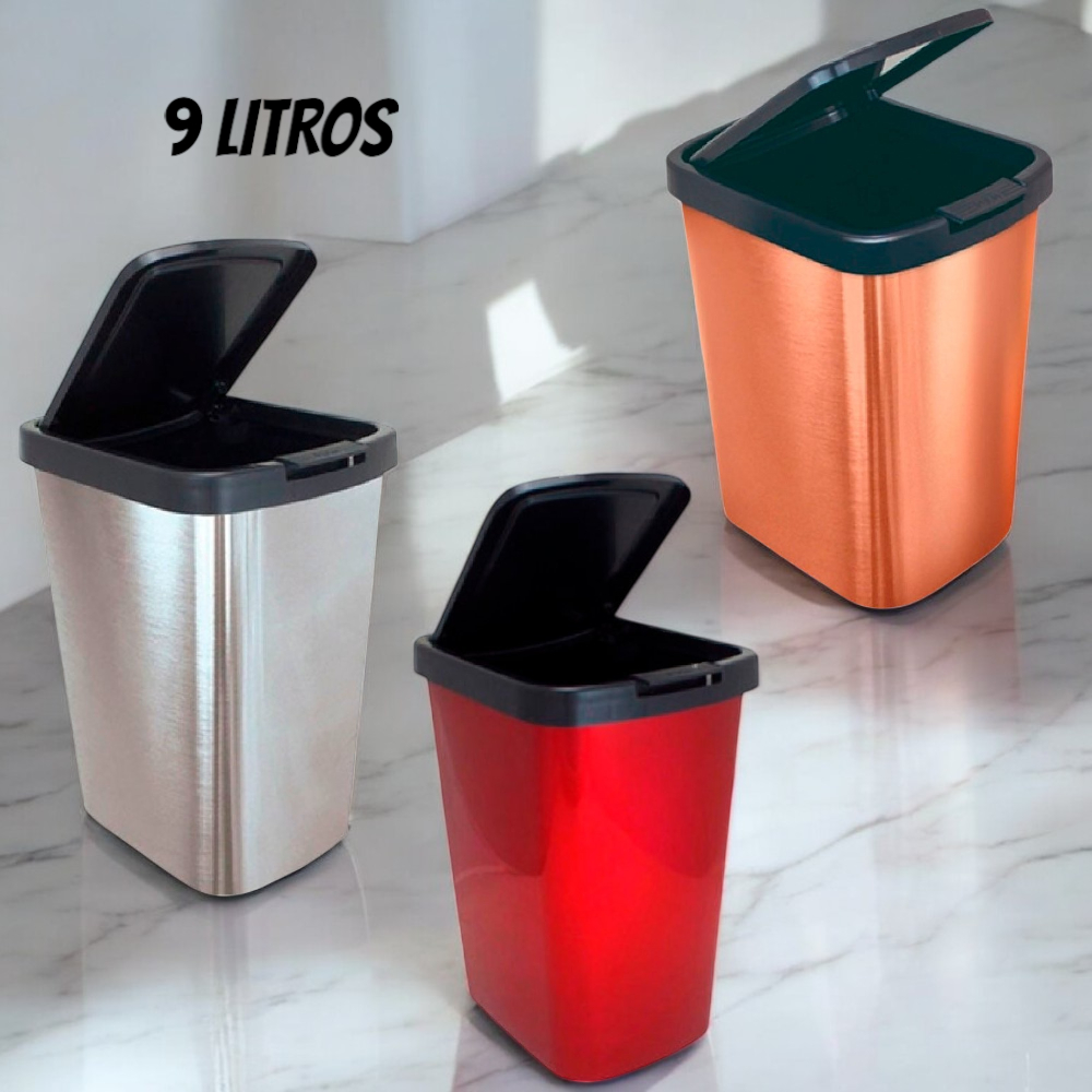 Lixeira Cesto de Lixo 9 Litros com Tampa Click Higiênica Pra Banheiro Escritório Cozinha