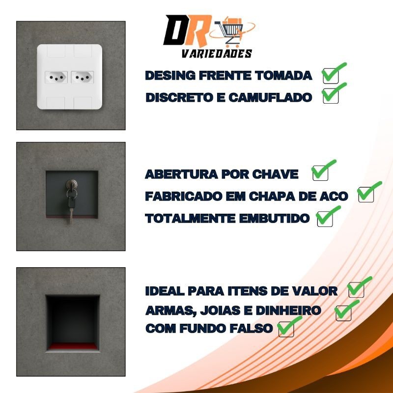 Cofre Camuflado Tomada Secreto Invisível p Armas, Dinheiro, Joias e Documentos p Embutir na Parede