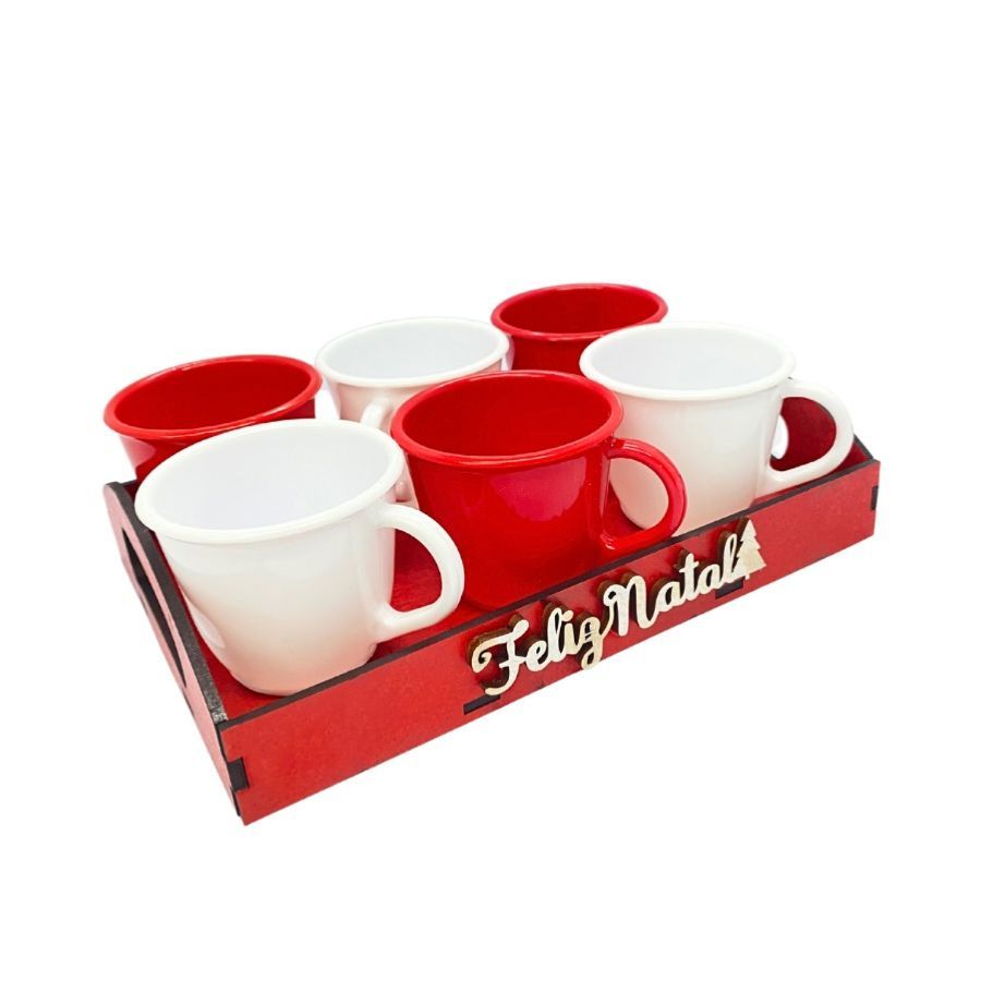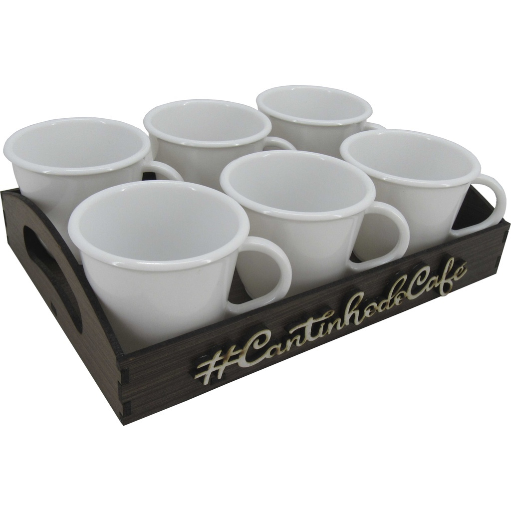 Kit Bandeja C/ 6 Xícaras Escolha a Cor Cantinho do Café, Chá