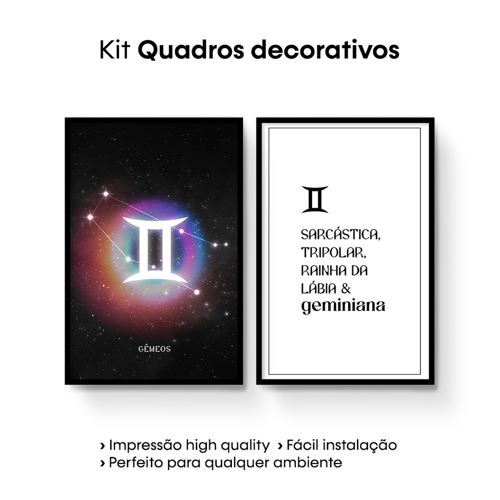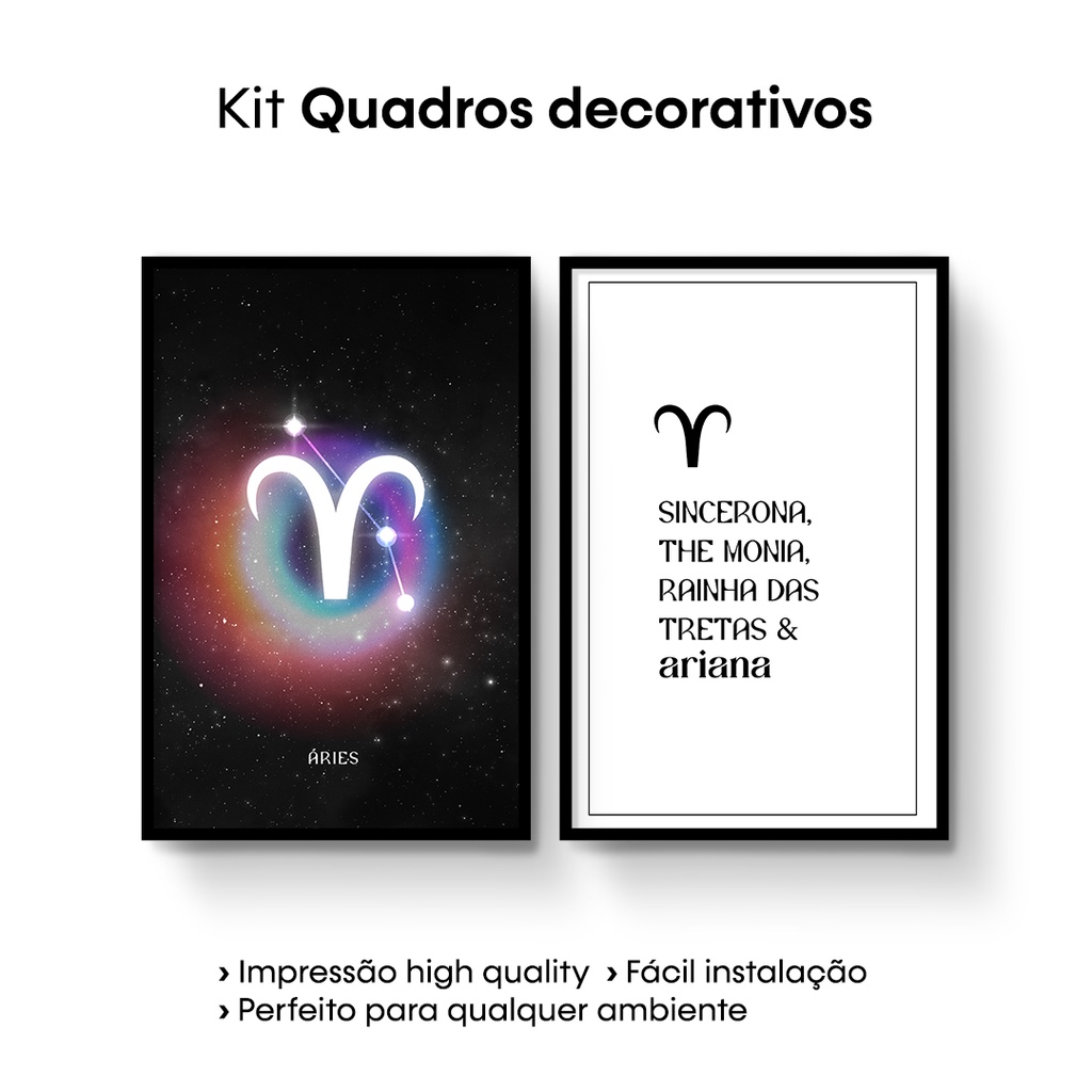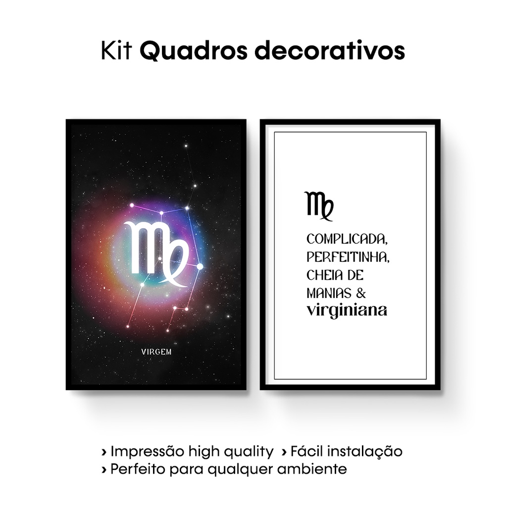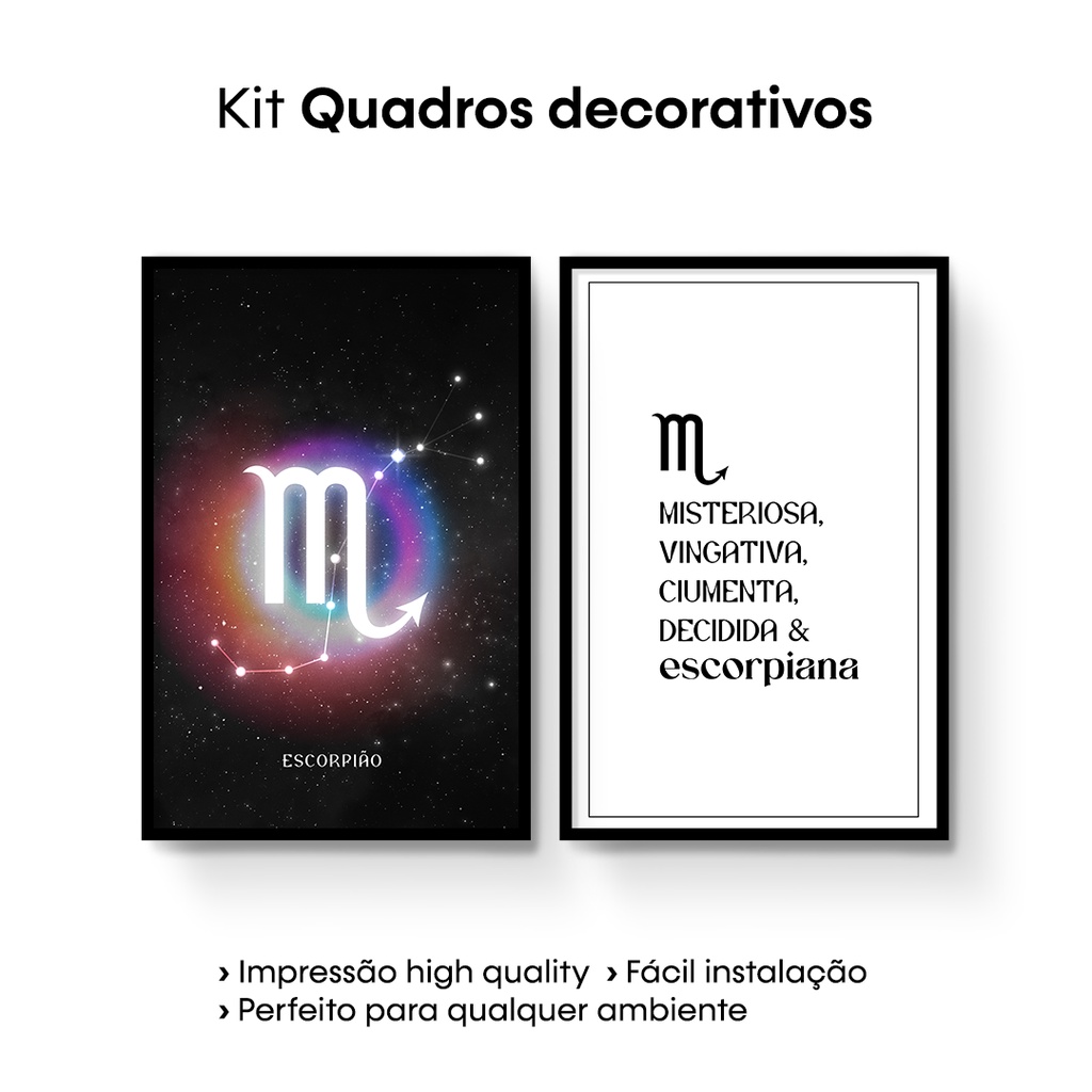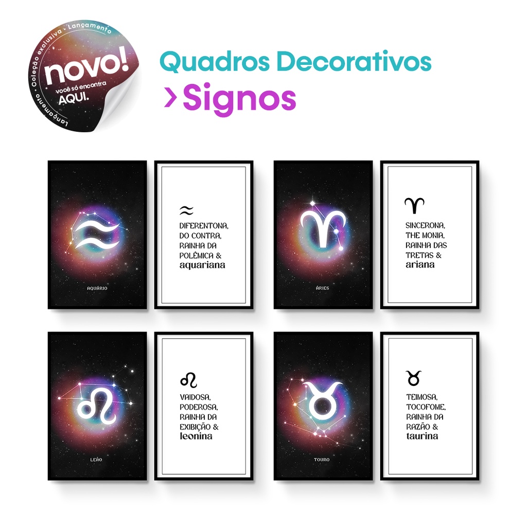 Quadros Decorativos Coleção Signos ( Áries, Touro, Gêmeos, Câncer, Leão, Virgem, Libra, Escorpião, Sagitário, Capricórnio, Peixes e Aquário ) | Benecontê