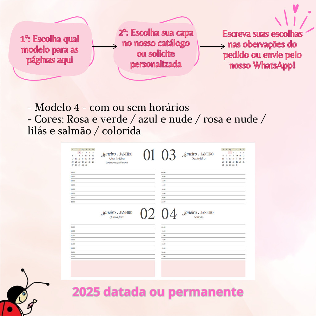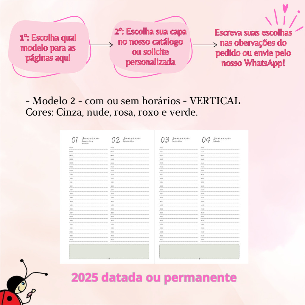 Agenda permanente com 2 dias por página personalizada