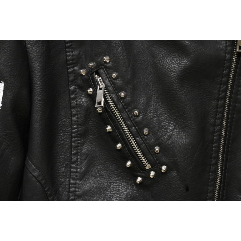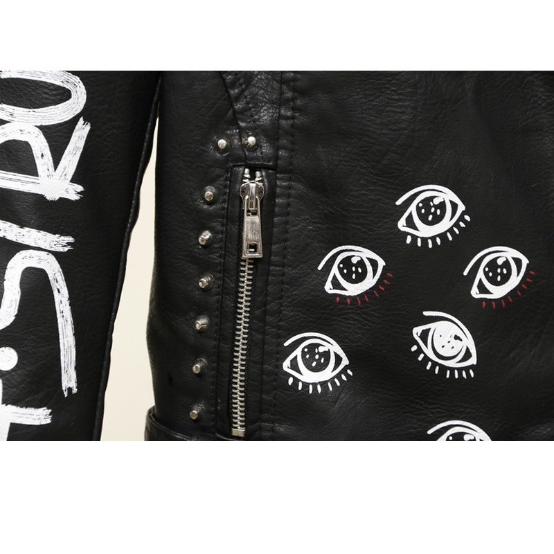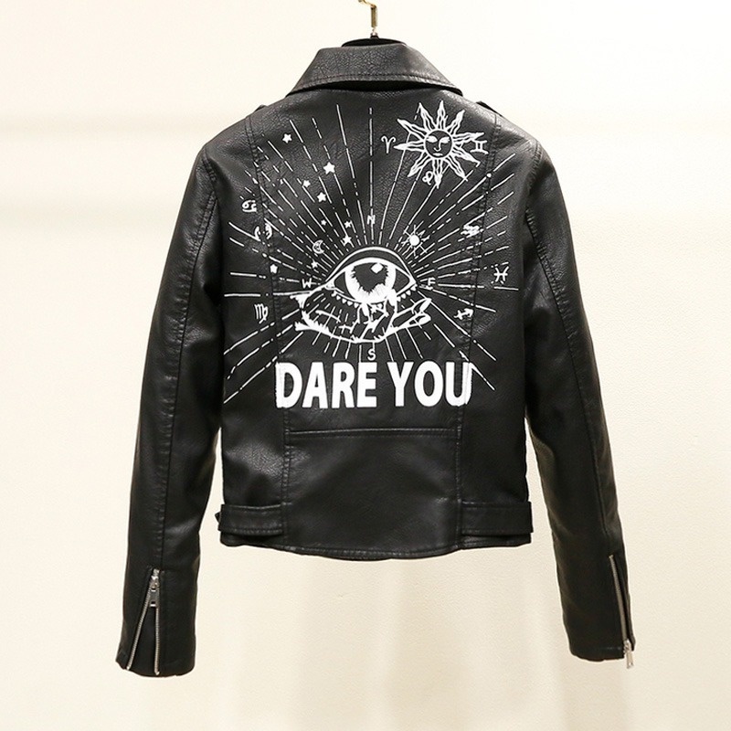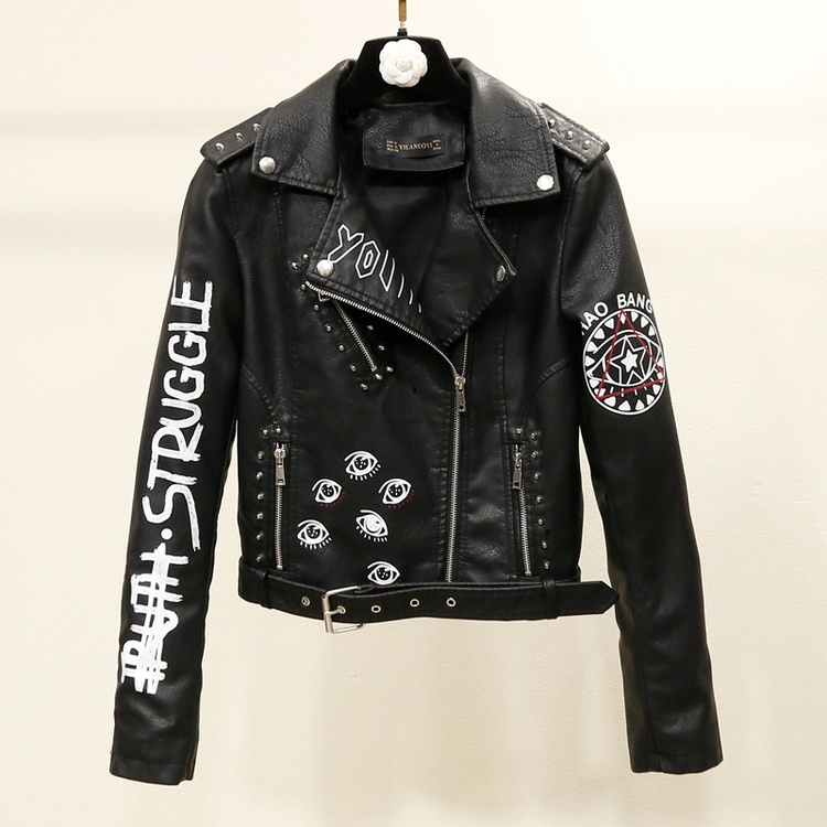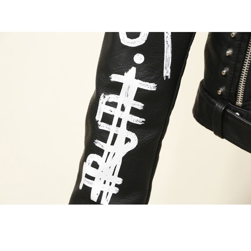 New Outono Mulheres Jaqueta De Couro Falso Feminino Rebites Letras Imprimir Motociclista Casaco Curto Das Do Punk Outwear