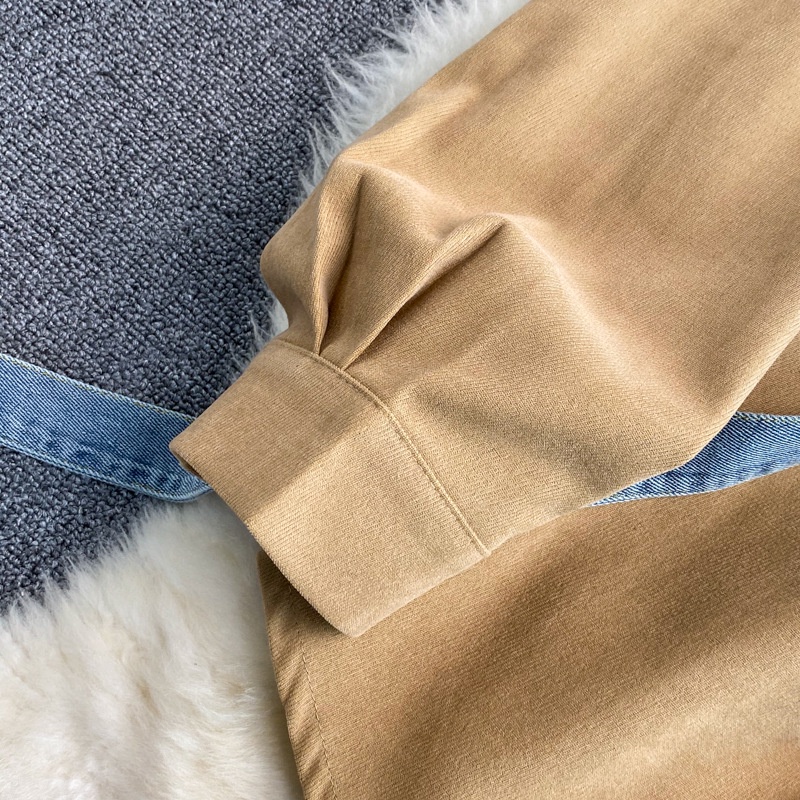 Vestido Curto De Corduroy Feminino Costurando Denim 2024 Outono Inverno Novos Vestidos Irregulares De Comprimento Médio