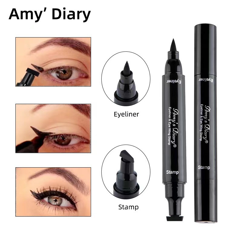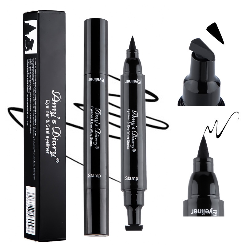 2 Em 1 Carimbo Delineador De Olhos Lápis De Dupla Ponta Líquido À Prova D'água Caneta De Selo Rápida Triângulo Seco Rápido Forro