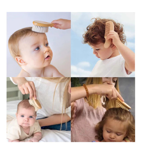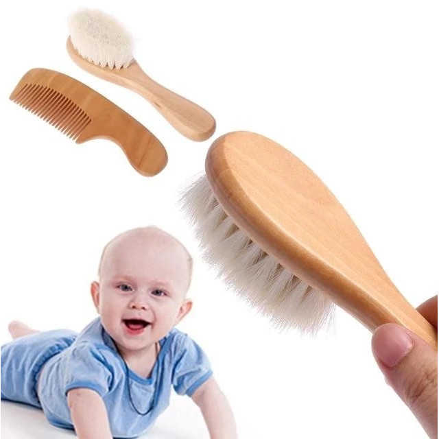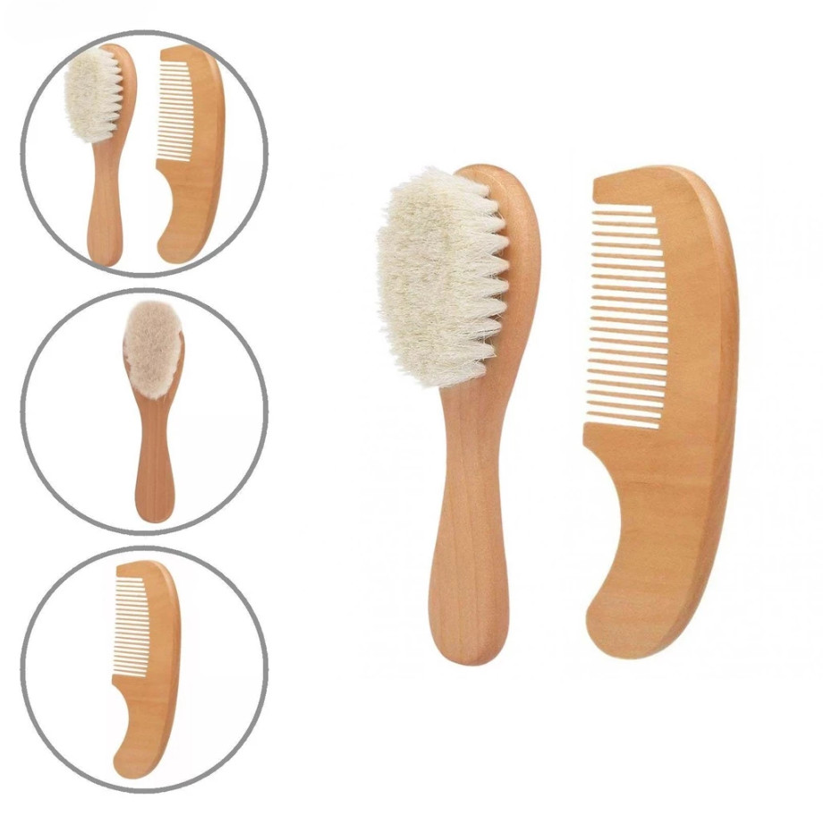2 Peças/Set Escova De Cabelo De Lã Com Pente De Madeira Para Massagem/Cuidados O Bebê