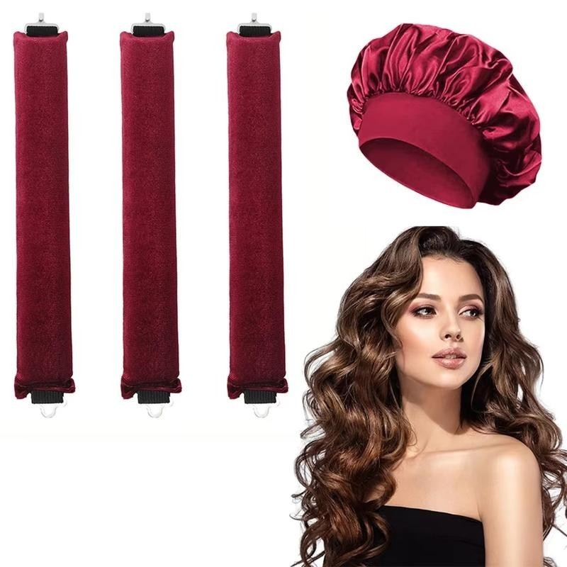 Modelador De Cabelo Sem Calor , Conjunto De Touca De Dormir De Cetim Rolos , Haste De Ondulação , Modeladores Macios