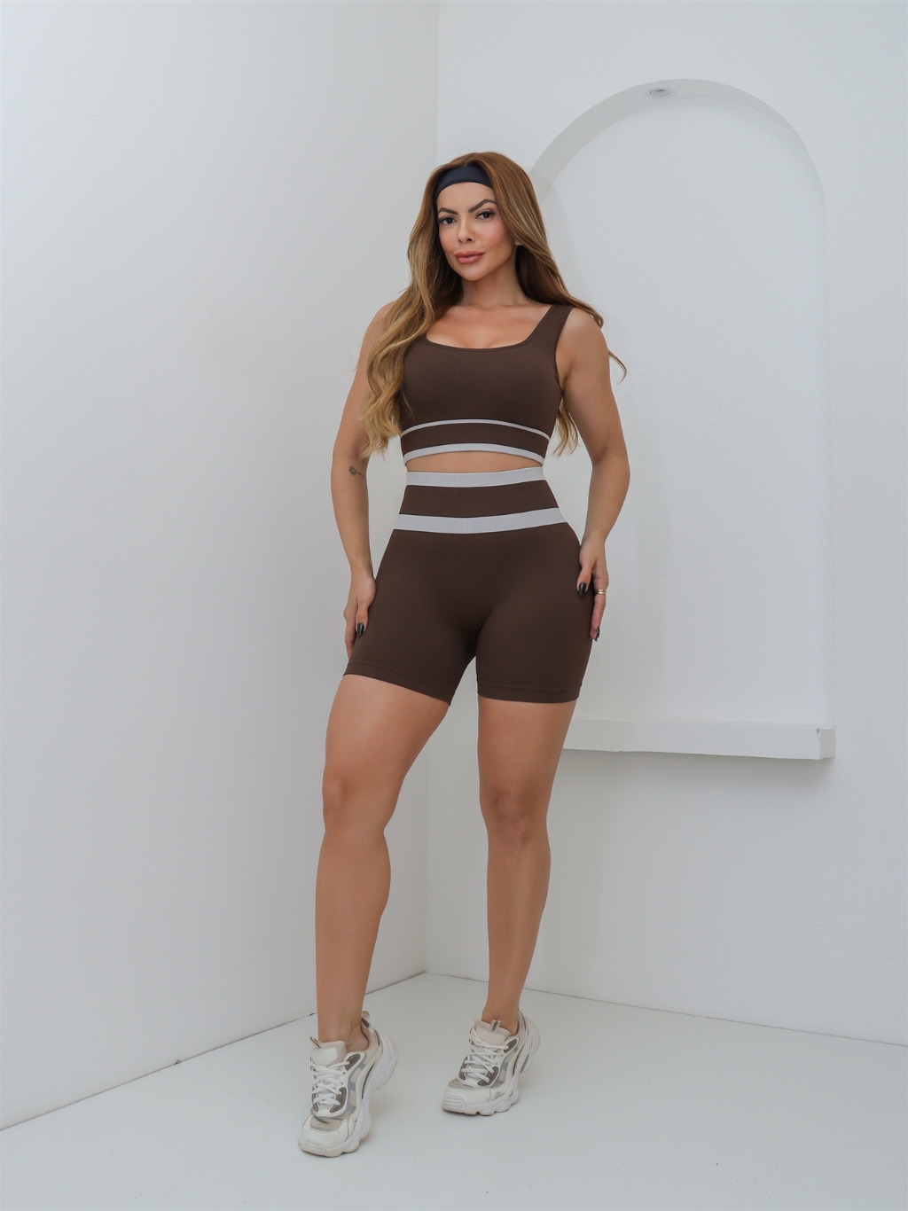 Conjunto Feminino Fitness Canelado Poliamida Elástico Short Esportivo Academia Yoga 3RD SD1851