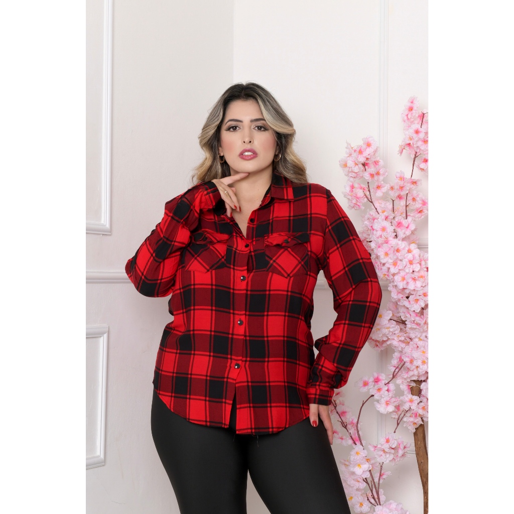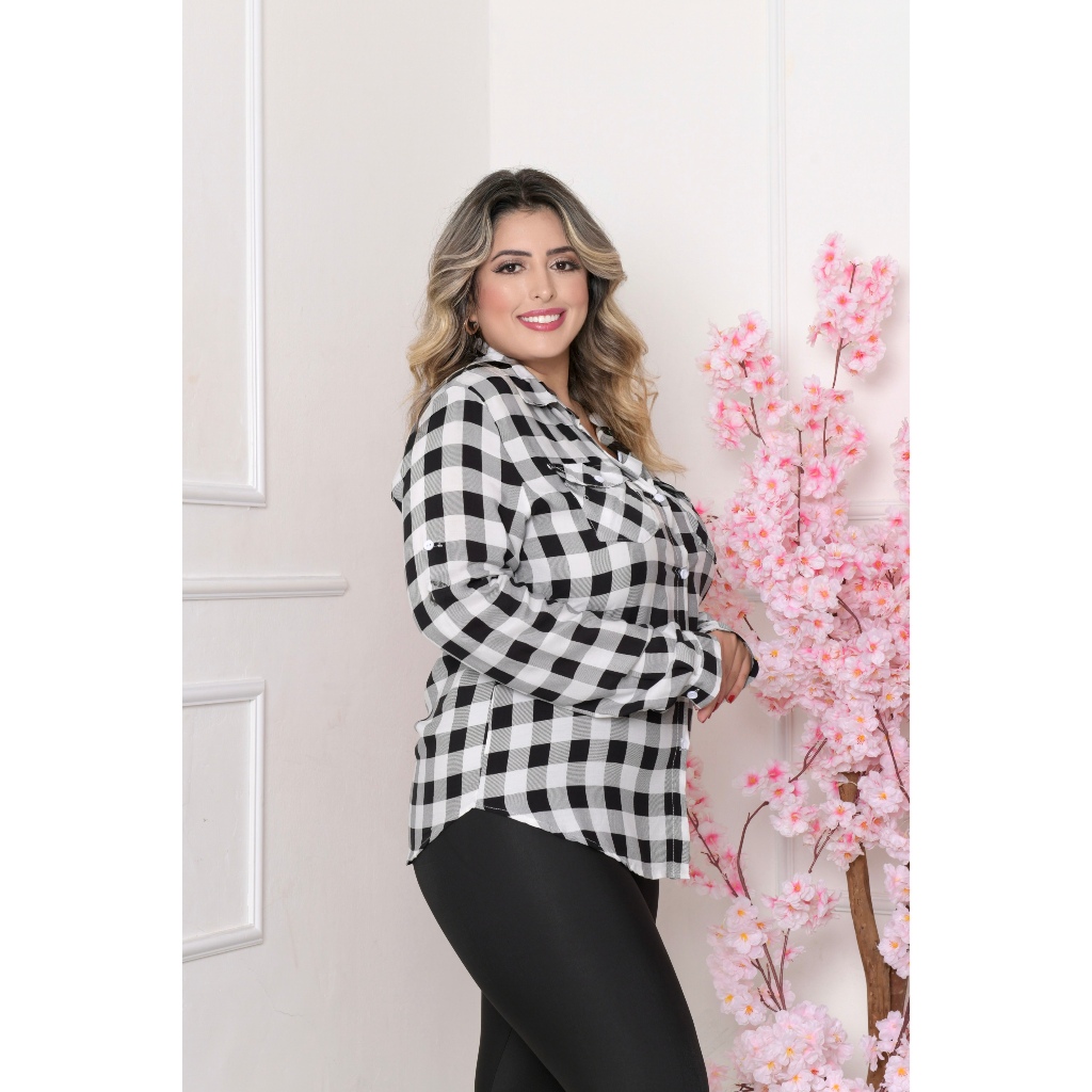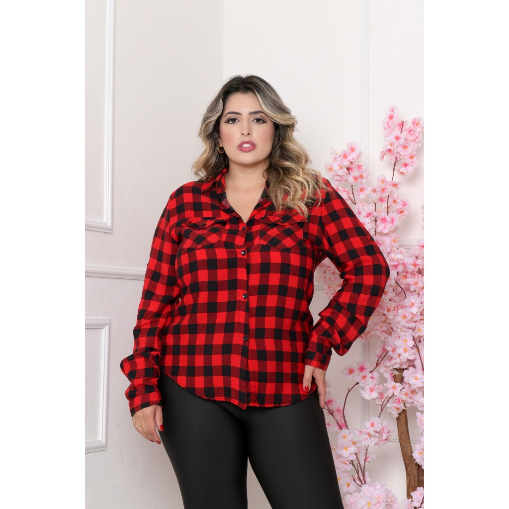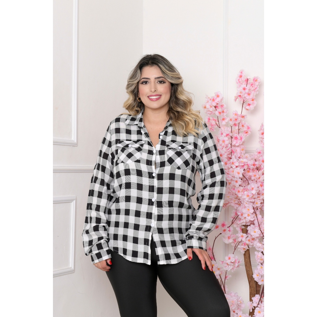 Camisa Xadrez Plus Size Feminina Viscose Com Bolsos SD869