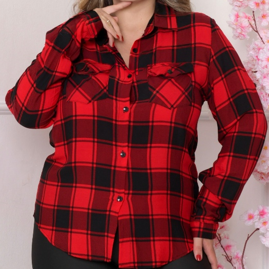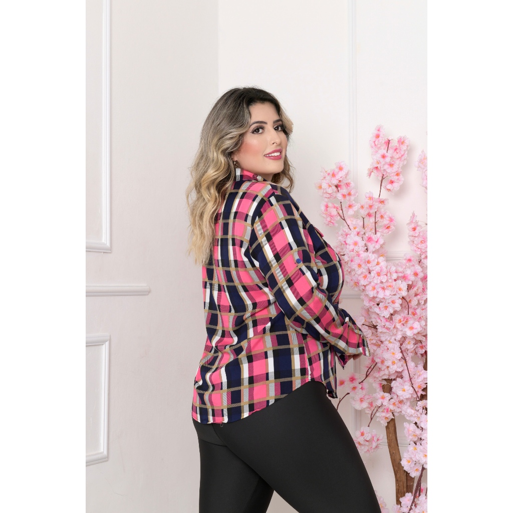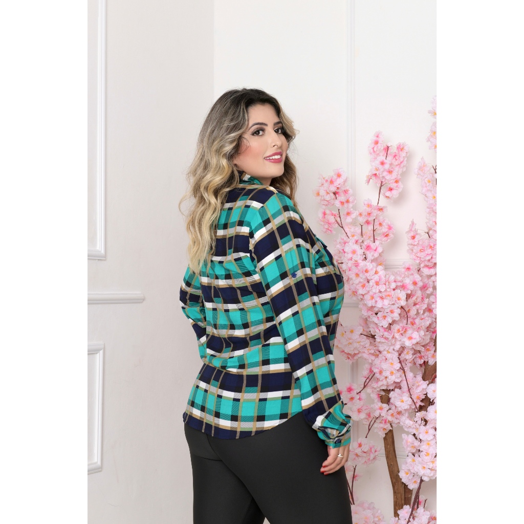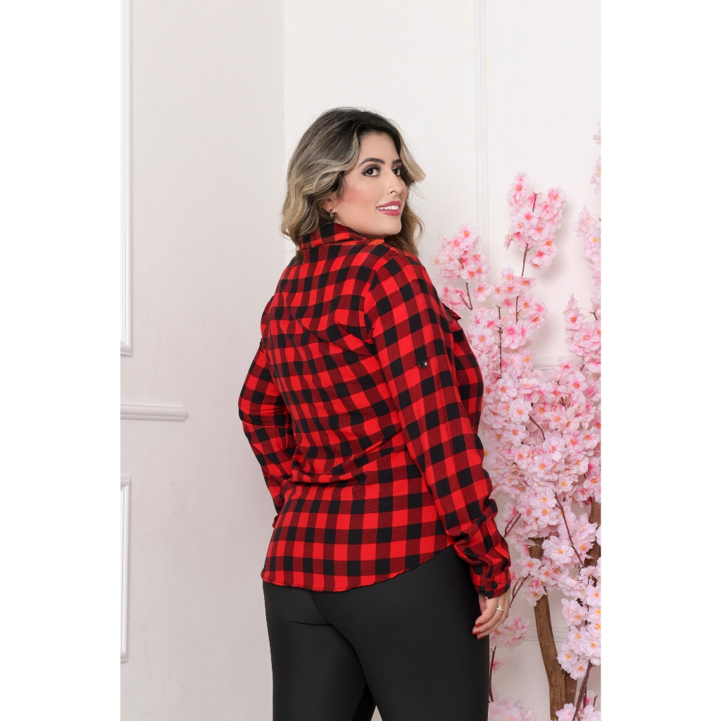 Camisa Xadrez Plus Size Feminina Viscose Com Bolsos SD869